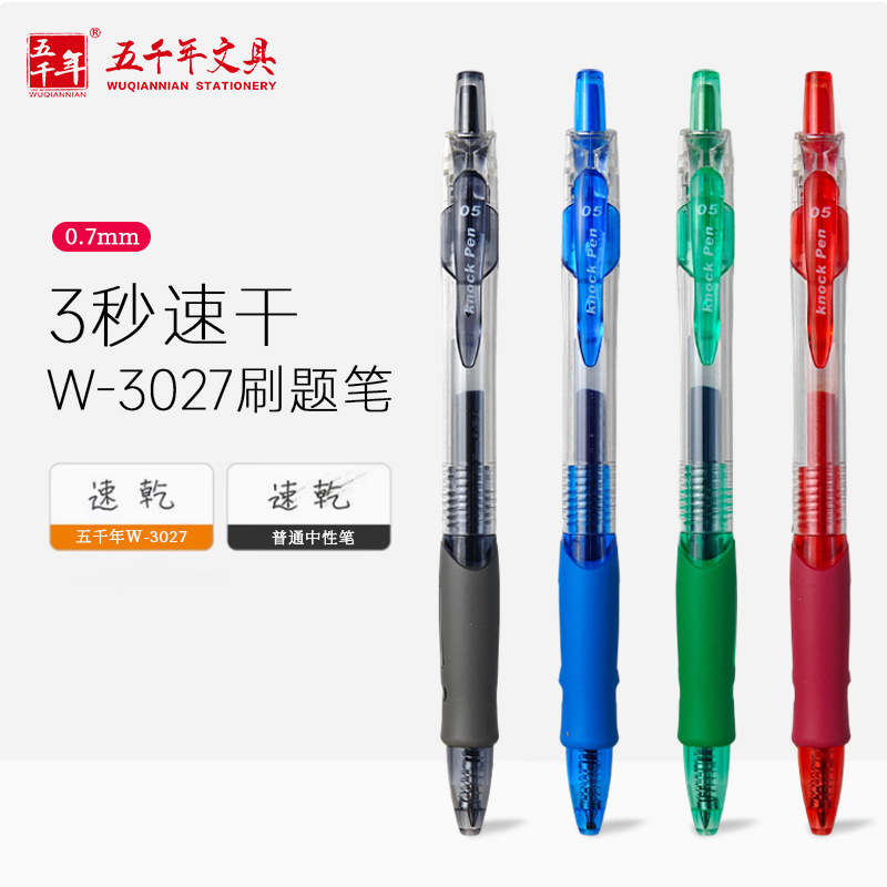 五千年按动中性笔学生专用0.5速干考试笔按压式刷题笔批发定制笔