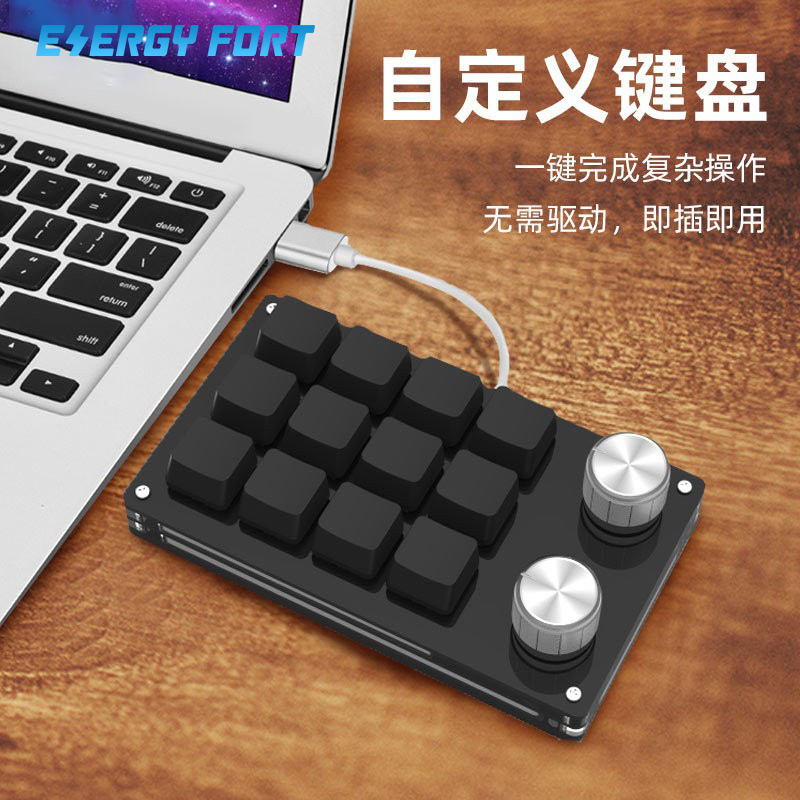 (12键+4旋钮,旋钮顺、逆时针及按下也可同按键一样进行自定义功能)