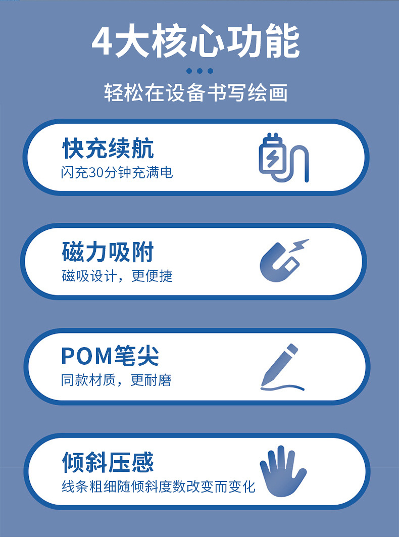 ユニバーサルモデルは、Appleの静電容量式ペン、磁気吸着式携帯電話タブレットスタイラス、AppleとHuaweiのiPadの手書きに適しています。