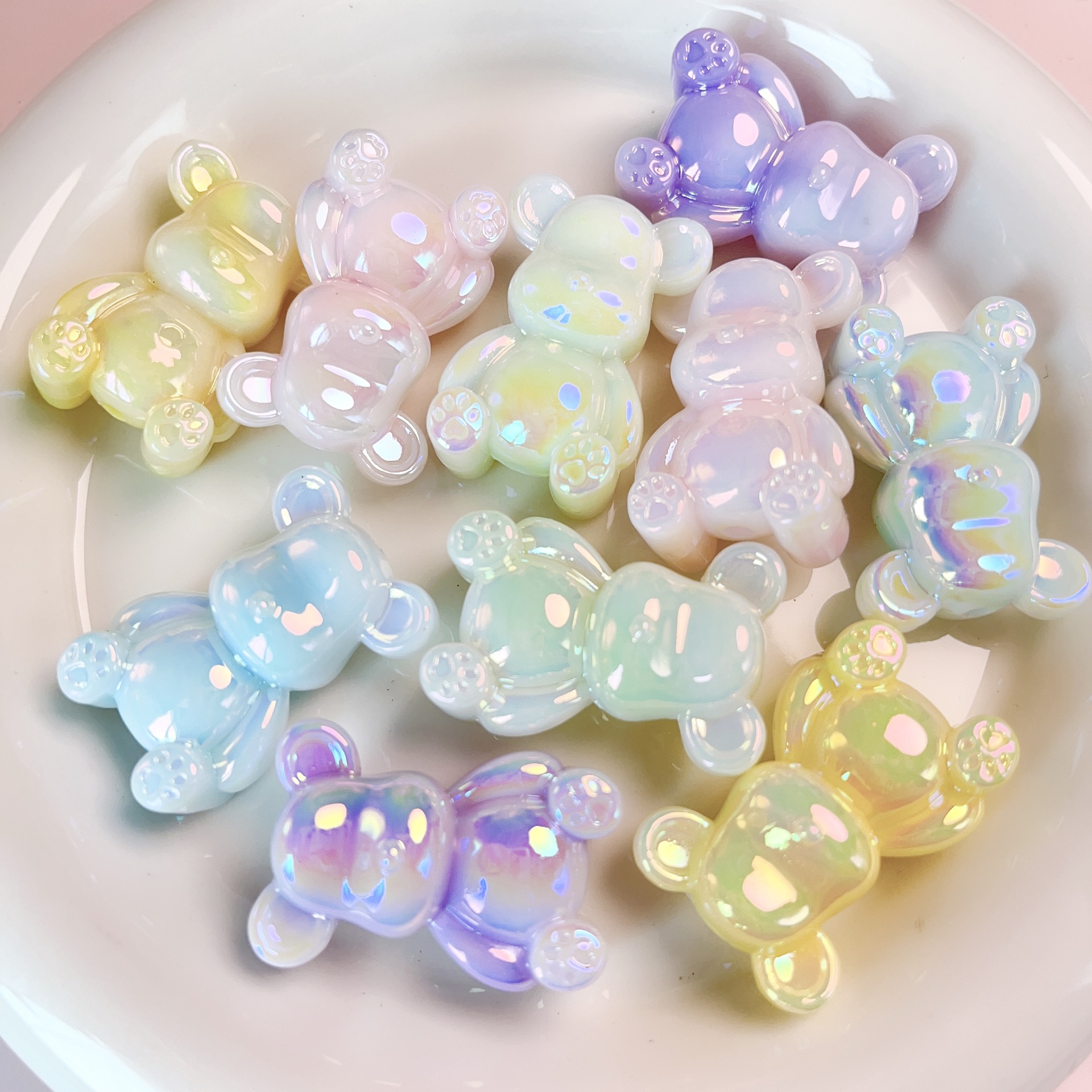 馬貝uv夜光2色熊直孔散珠diy携帯電話チェーンキーホルダー車掛けビーズ材料アクセサリー