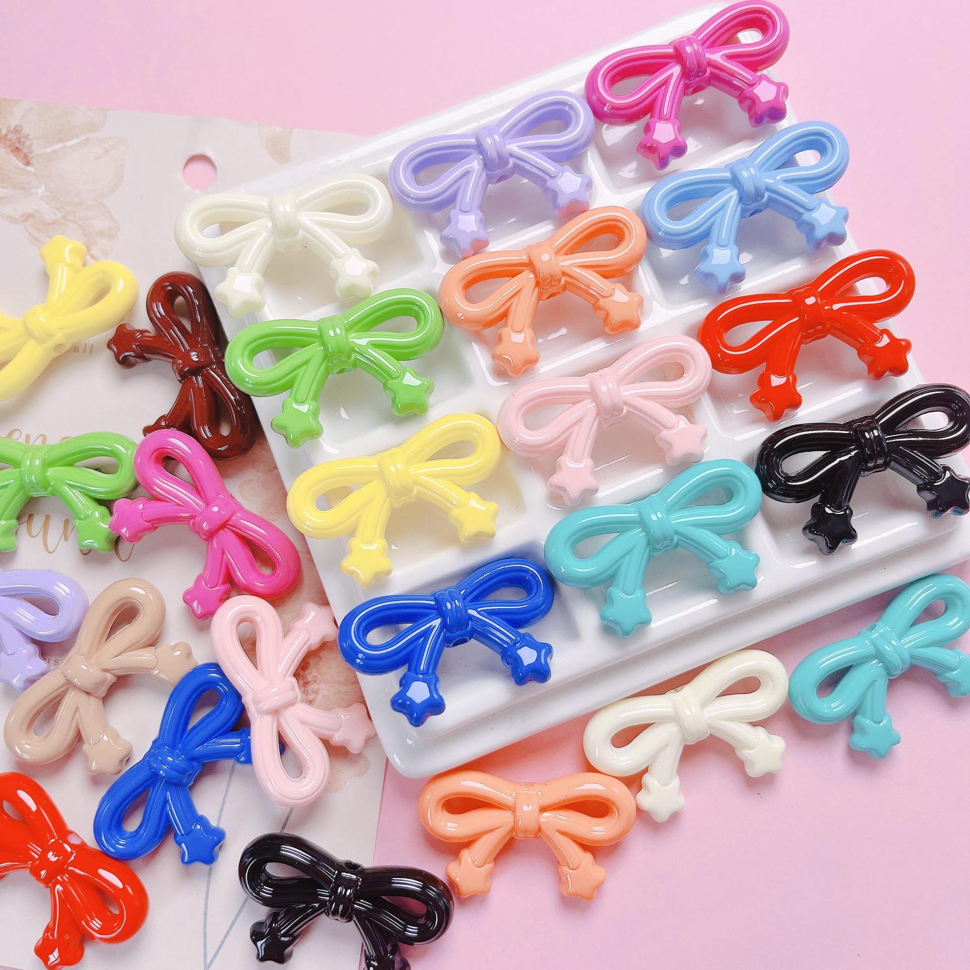 高品カラー塗装星蝶結び直孔ビーズdiy携帯電話チェーンキーホルダーアクセサリー材料