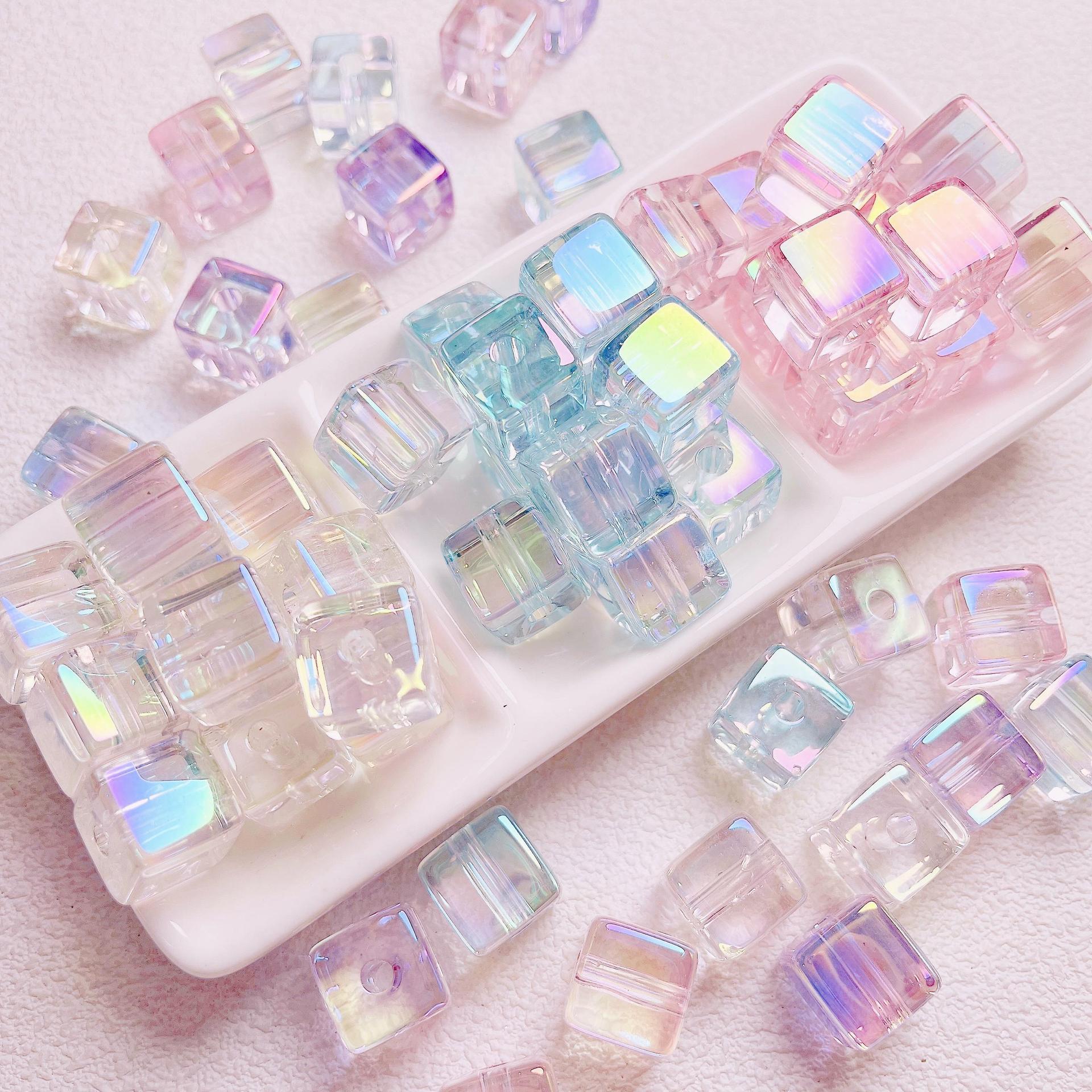 8mm氷透実色uvメッキ彩ひし形小方珠DIY携帯電話チェーン隔珠ネックレスビーズ材料アクセサリー部品