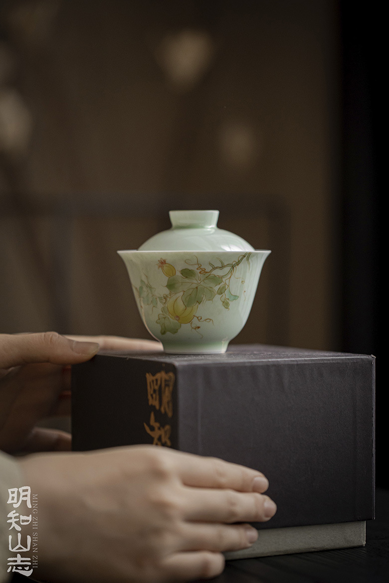 明知山志艾緑葫芦藤福霊蓋碗文人器カンフー茶器家庭用茶碗手描き蓋碗
