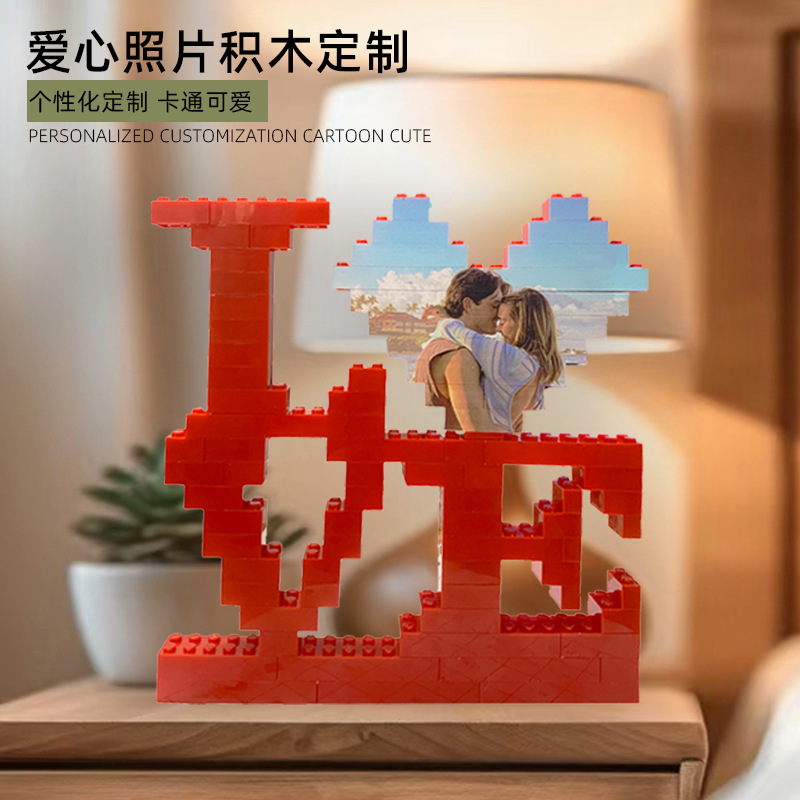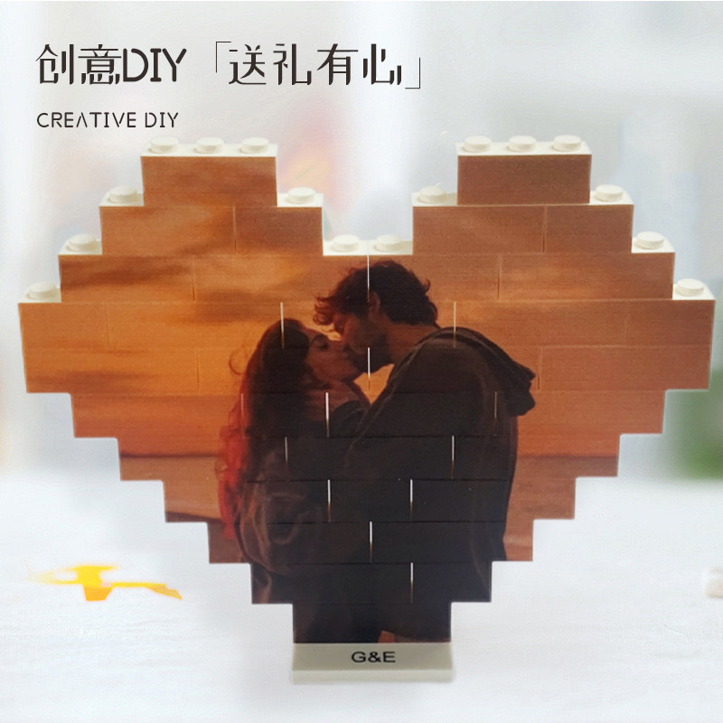 クロスボーダー盲箱互換レゴバレンタインハート型写真パズル積み木玩具diyクリエイティブプレゼント