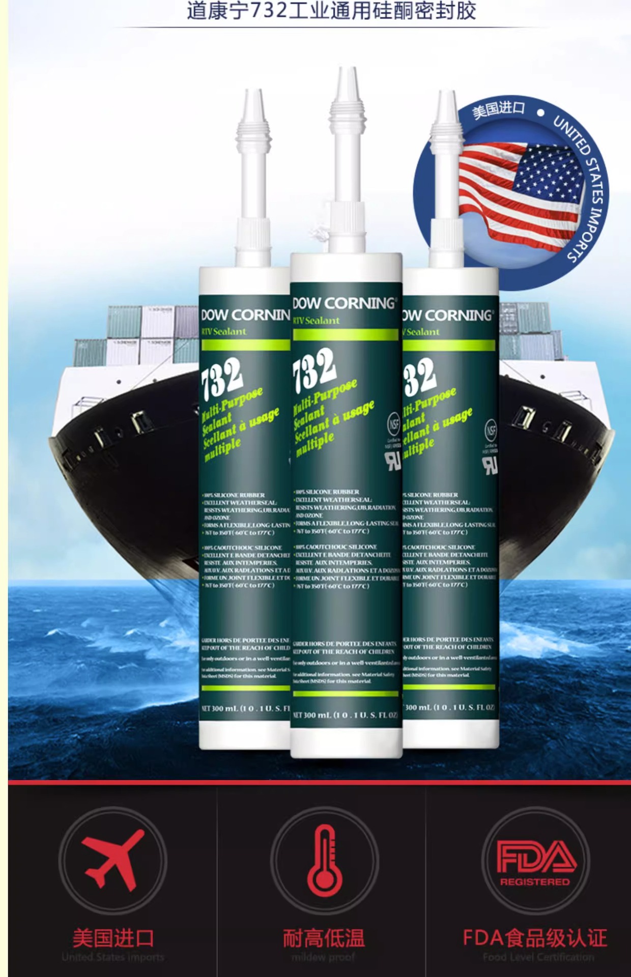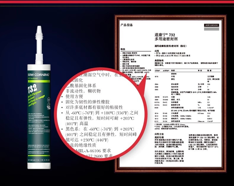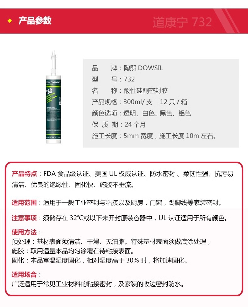 輸入陶熙道康寧732速乾ガラスペースト食品級シール剤は低温酸性防水防かびに耐える