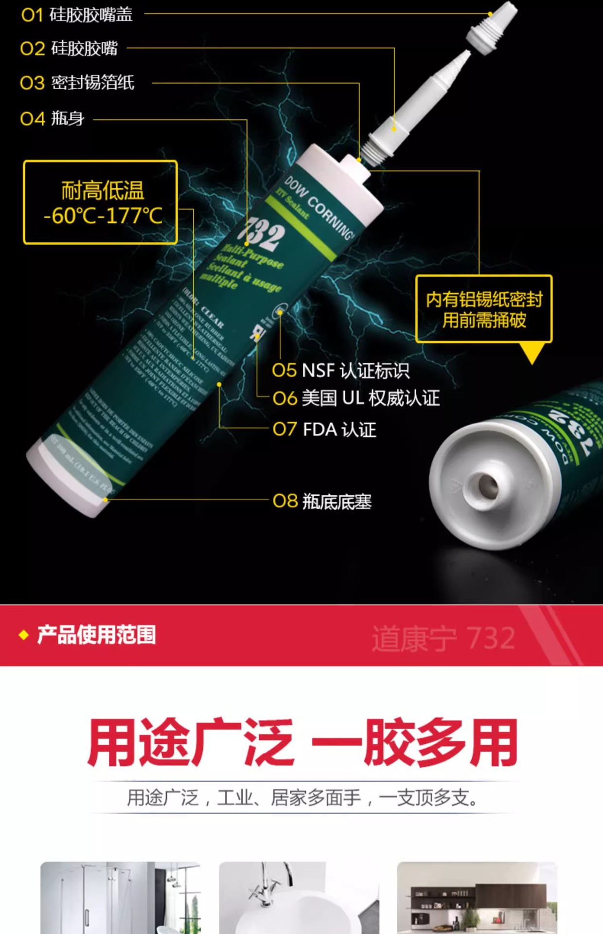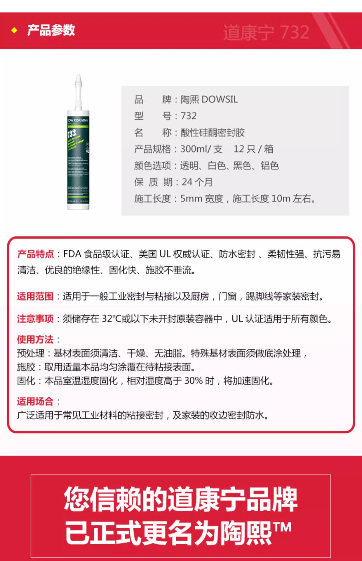 陶熙密封胶道康宁玻璃胶好适厨卫GP NP 168 791 995耐候胶结构胶