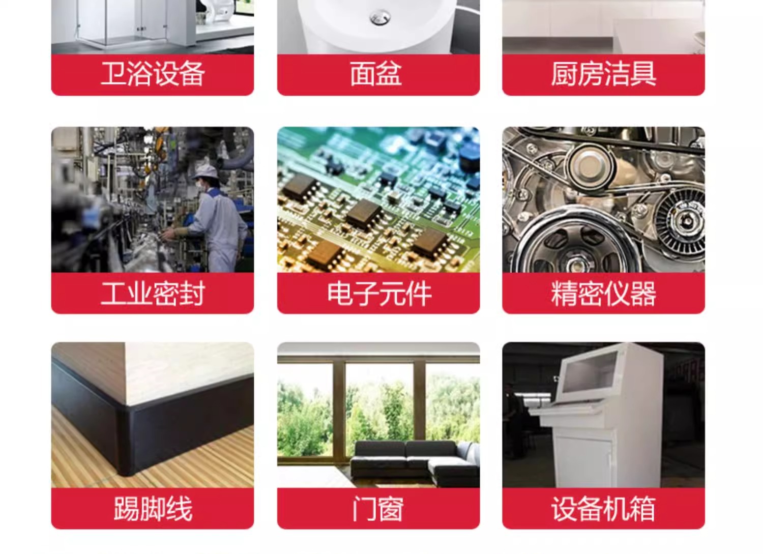 用途範囲 工業、家具、工場、電子