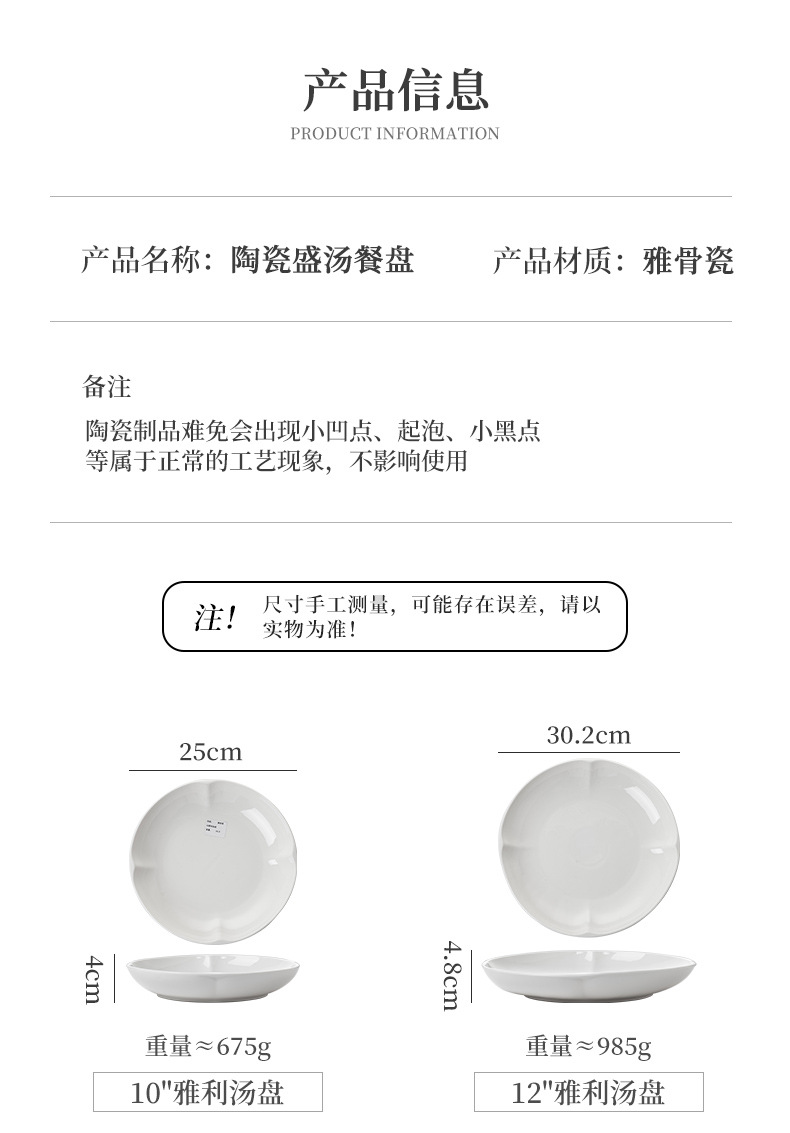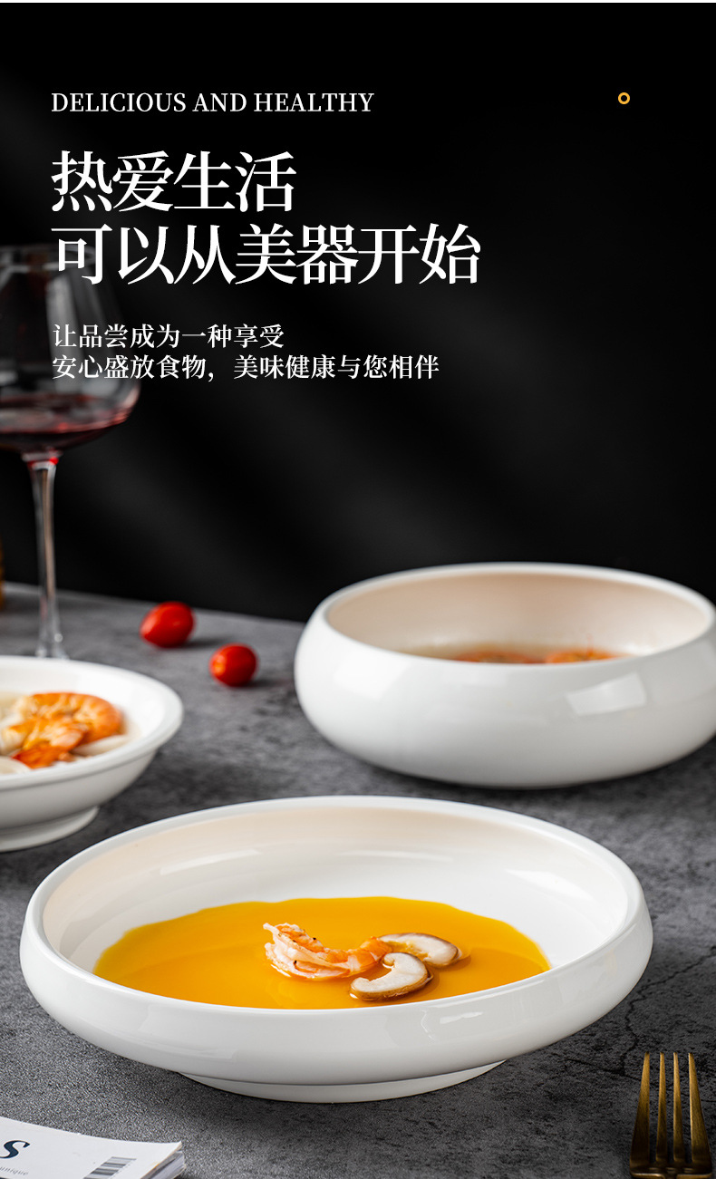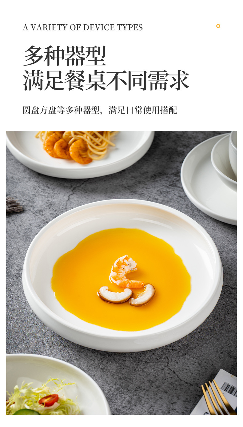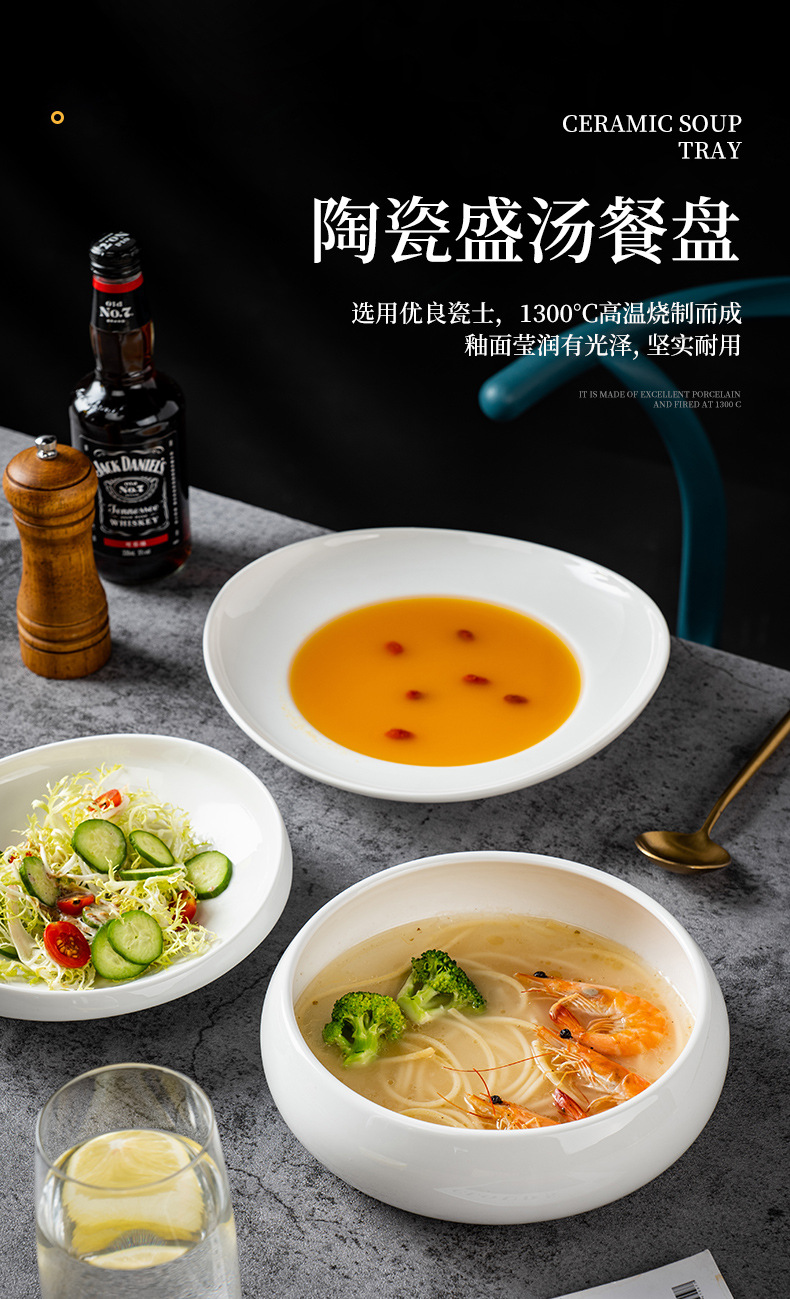 純白陶磁器異形スープ皿ホテルレストラン上スープ料理皿中レストラン例プレート炒め皿巣皿シンプル