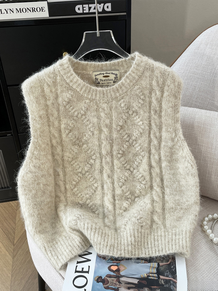 韩系软糯麻花针织马甲女春秋季新款加厚叠穿圆领毛衣背心马夹外搭