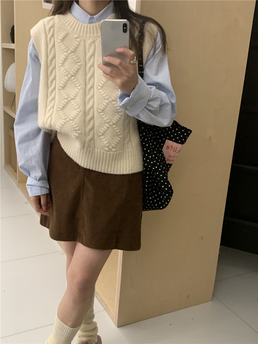韓国の麻の花のニットのベストのベストのベストの女性の秋のゆったりした純色は重ねて外にセーターを着ます。