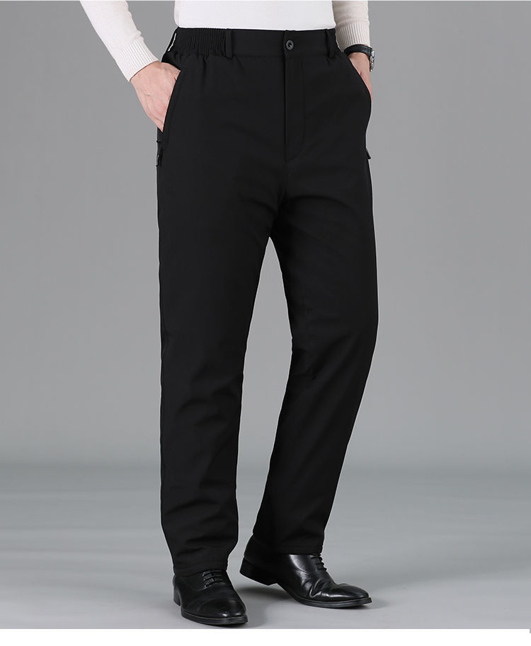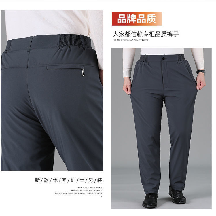 中高年男性は綿のズボンとベルベットを着て腰の男性のズボンを厚くして冬の5060のお父さんはゆるいストレートパンツを着ている