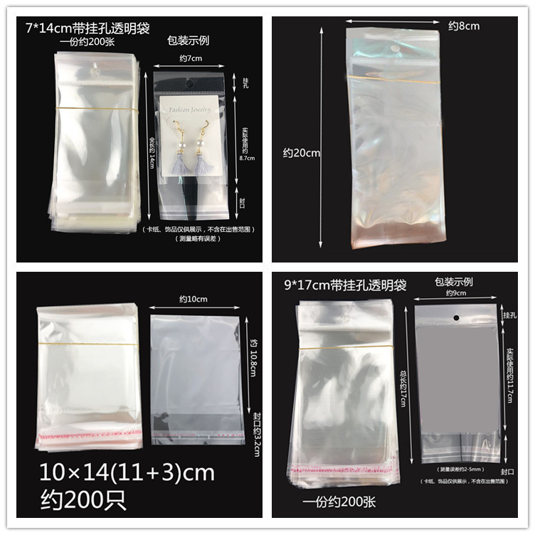 Opp自粘袋中号プラスチック包装袋ピアスブレスレット小物透明包装袋約200匹