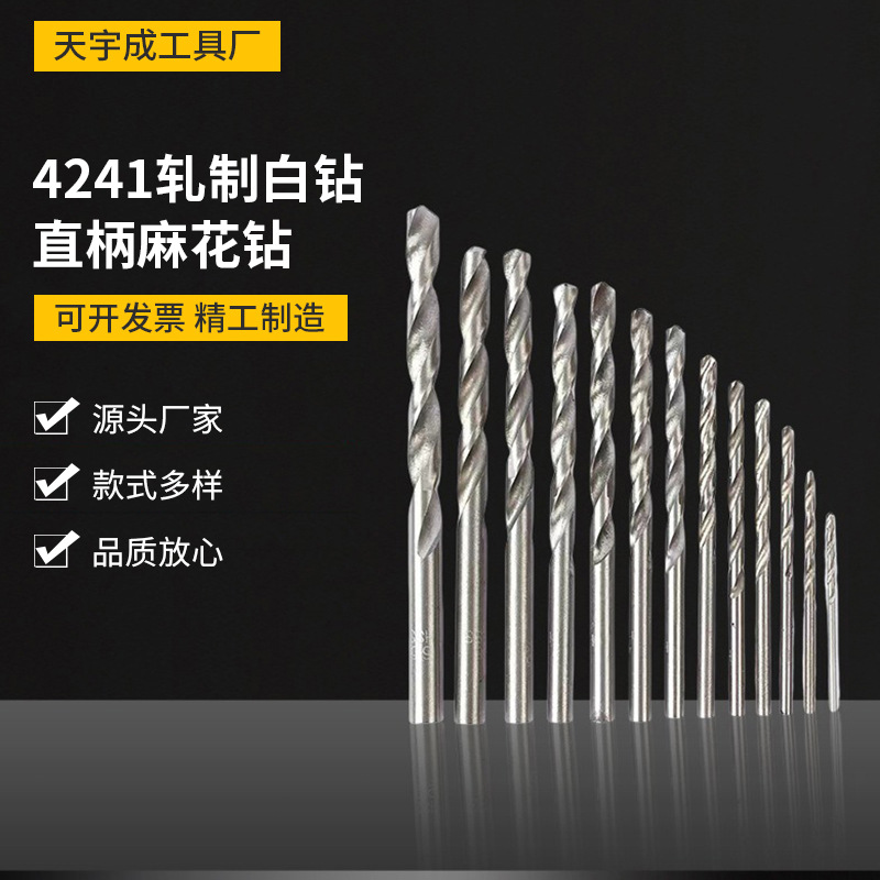 メーカー直供現物4241圧延白色清辺ドリルhss高速度鋼直柄麻花ドリル木工アルミ用