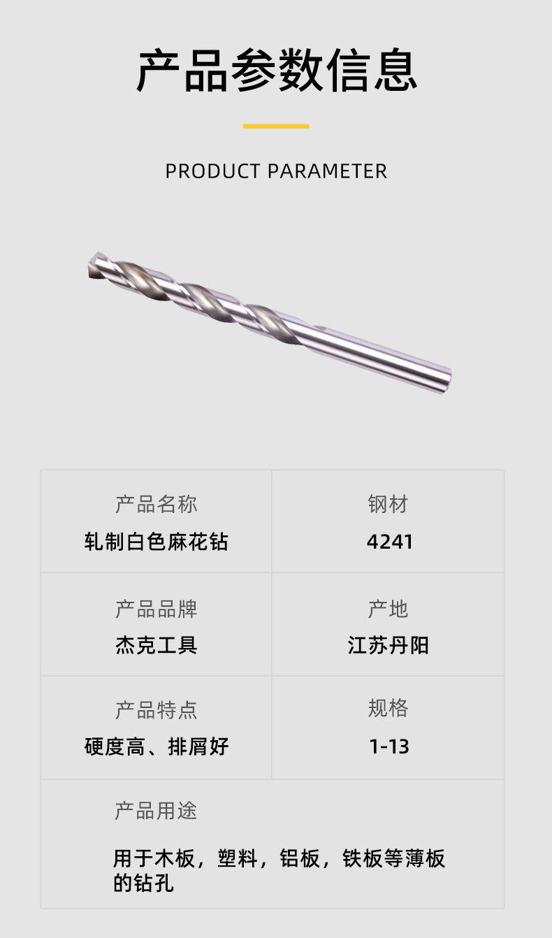 高速钢麻花钻头 HSS4241直柄清边白钻手电钻铁皮铝板塑料木板钻孔