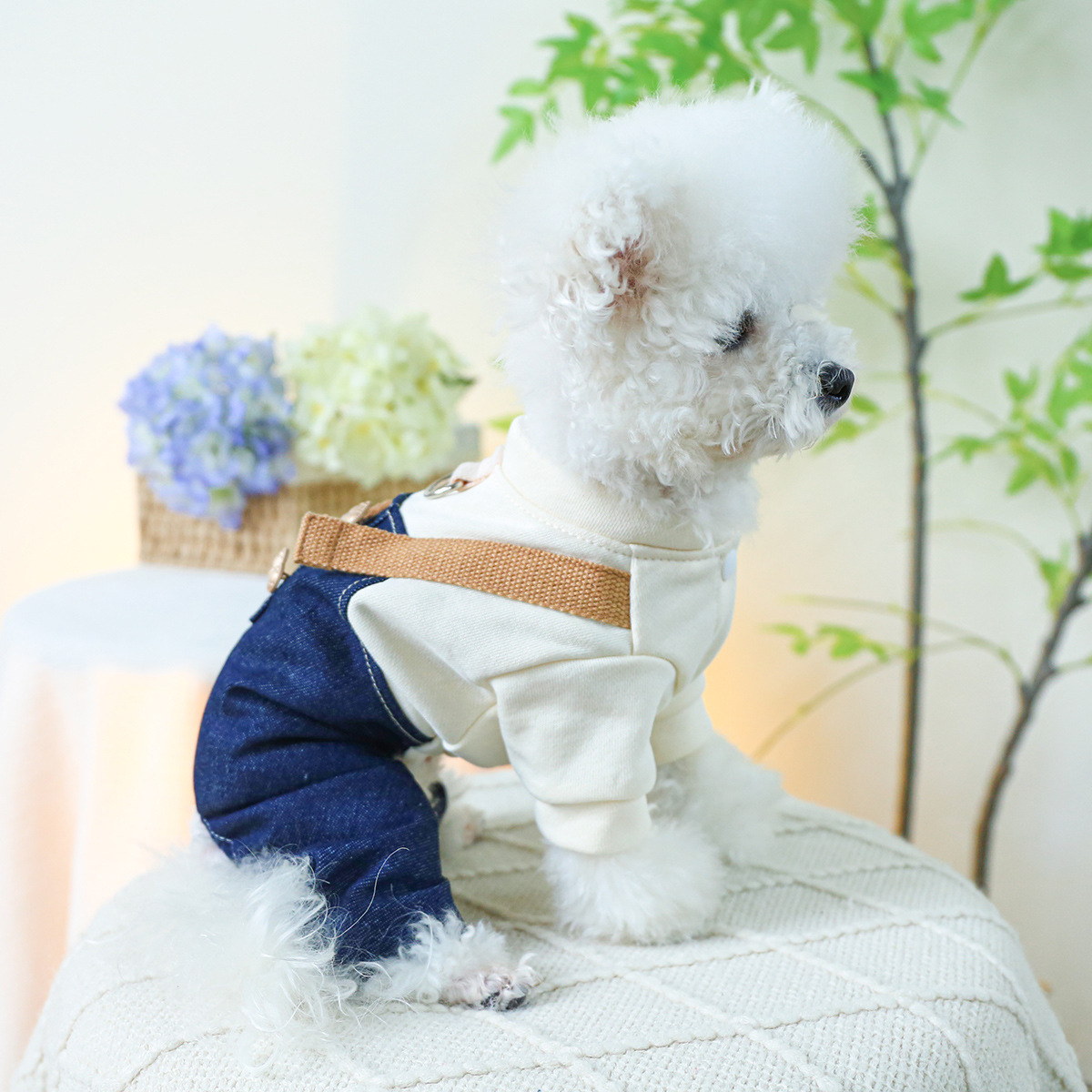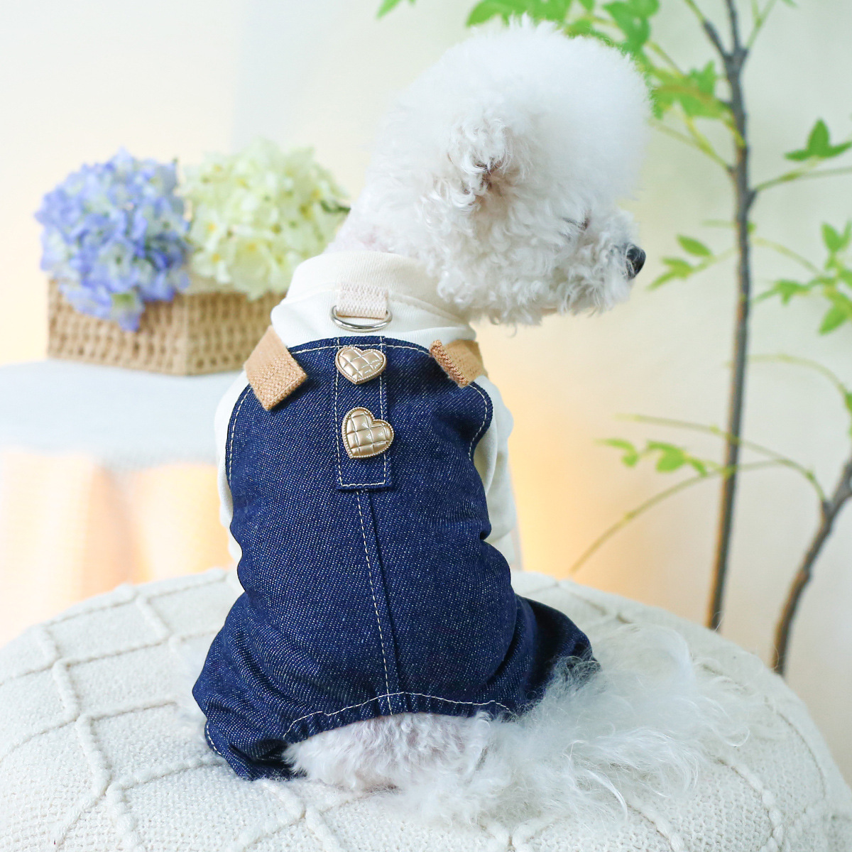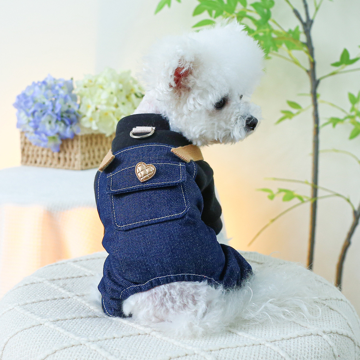 人気のペット用子犬・猫服、春と秋のデニムオーバーオール、四足服の工場直販