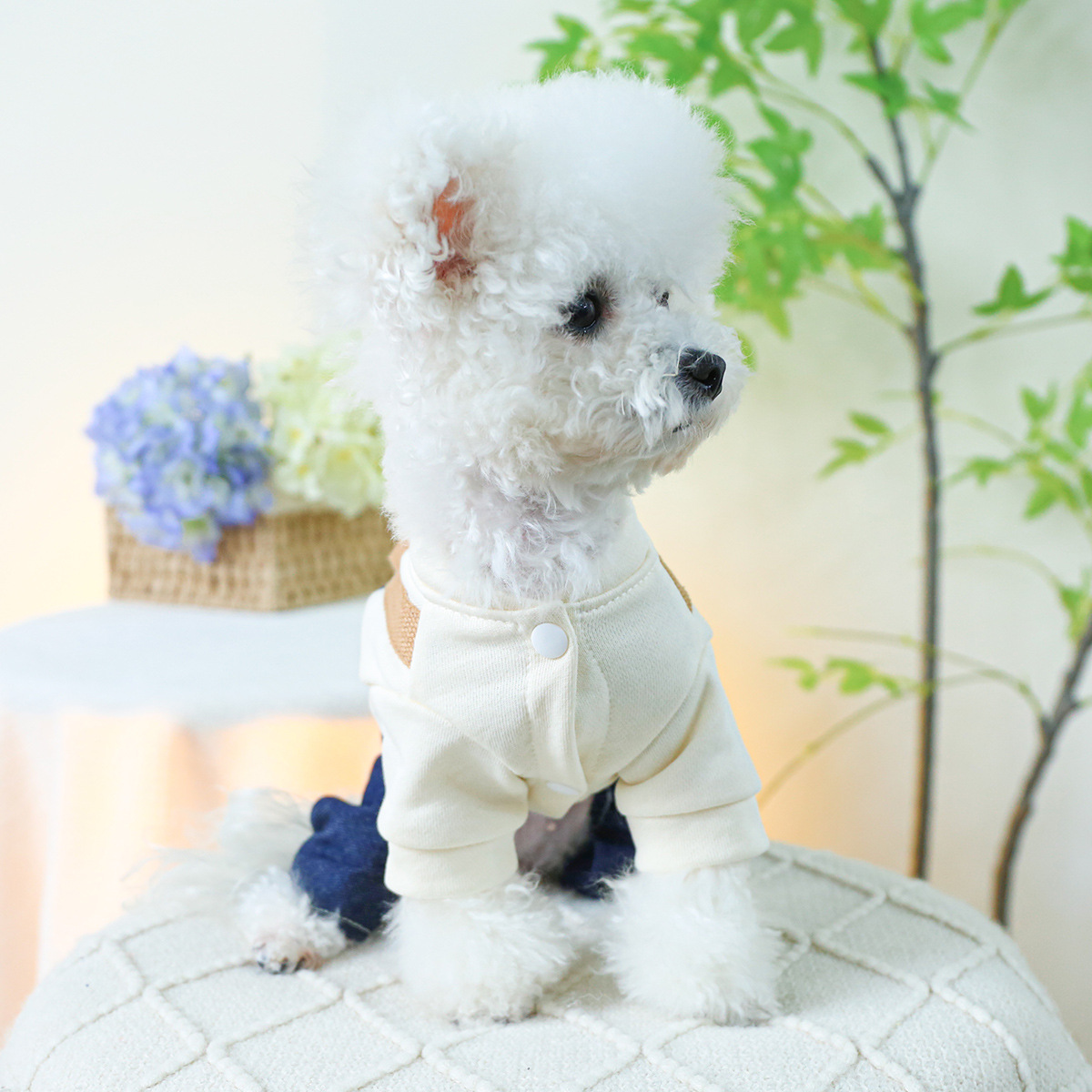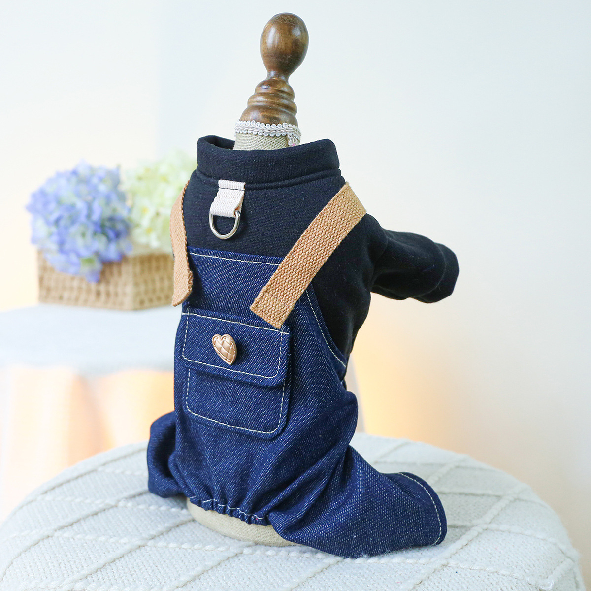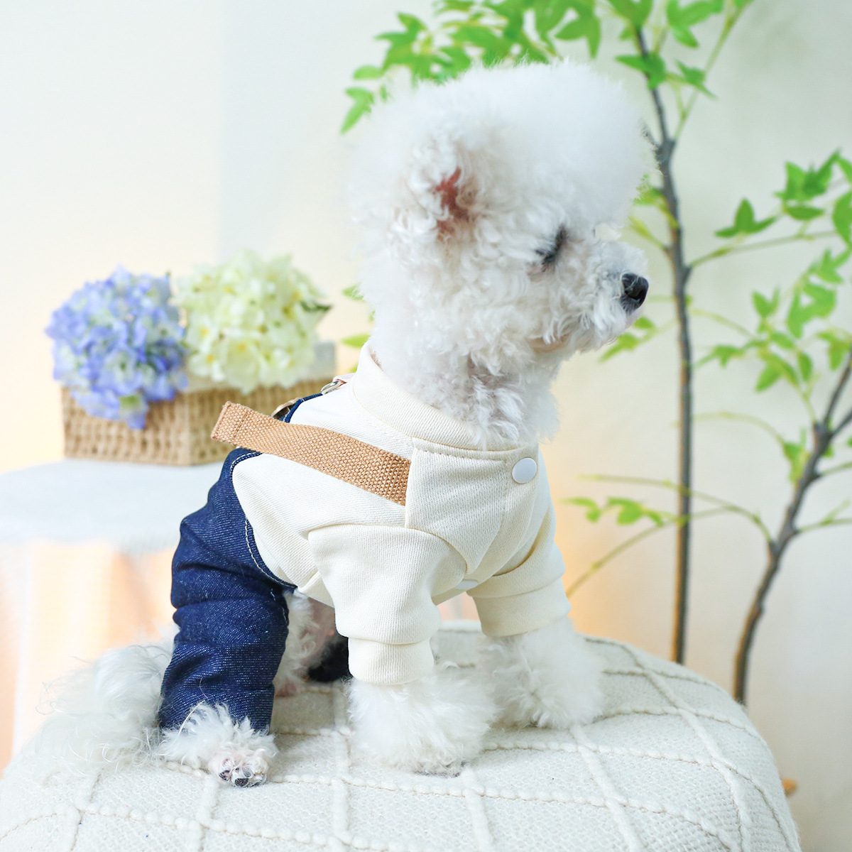 人気のペット用子犬・猫服、春と秋のデニムオーバーオール、四足服の工場直販