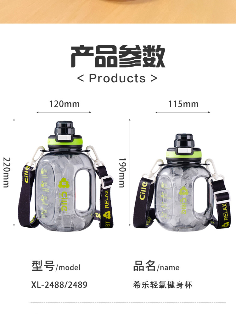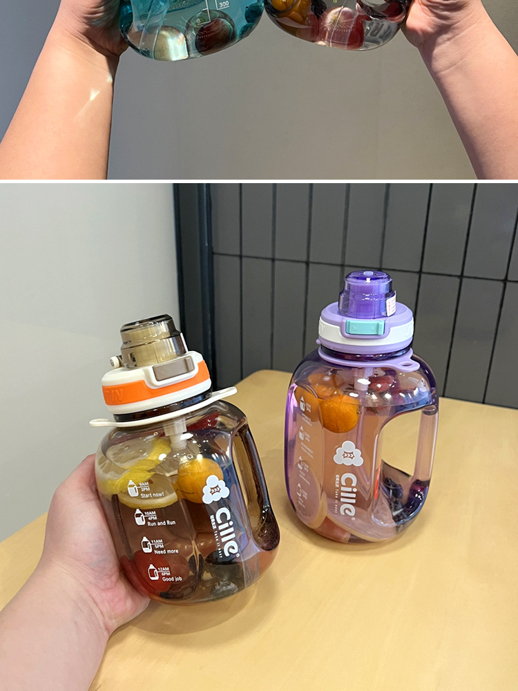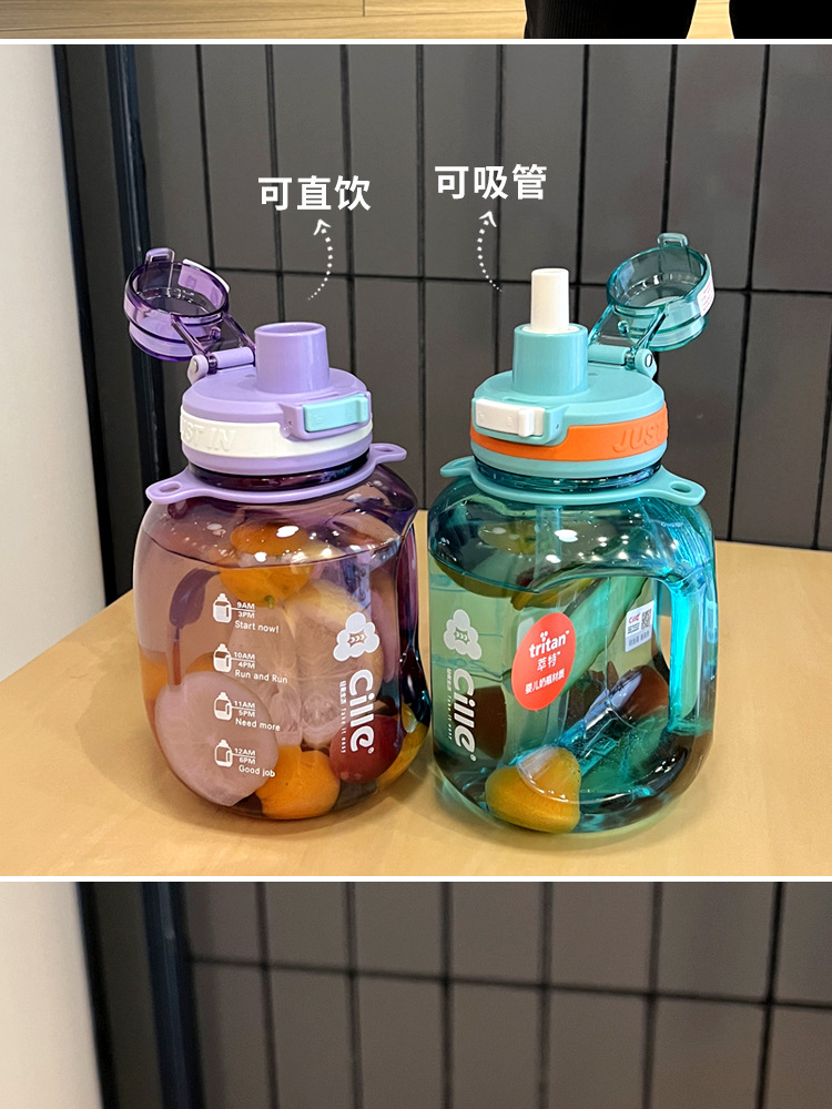 希楽フィットネスコップ携帯男女学生児童通学大容量コップ運動プラスチックコップ青色転倒防止