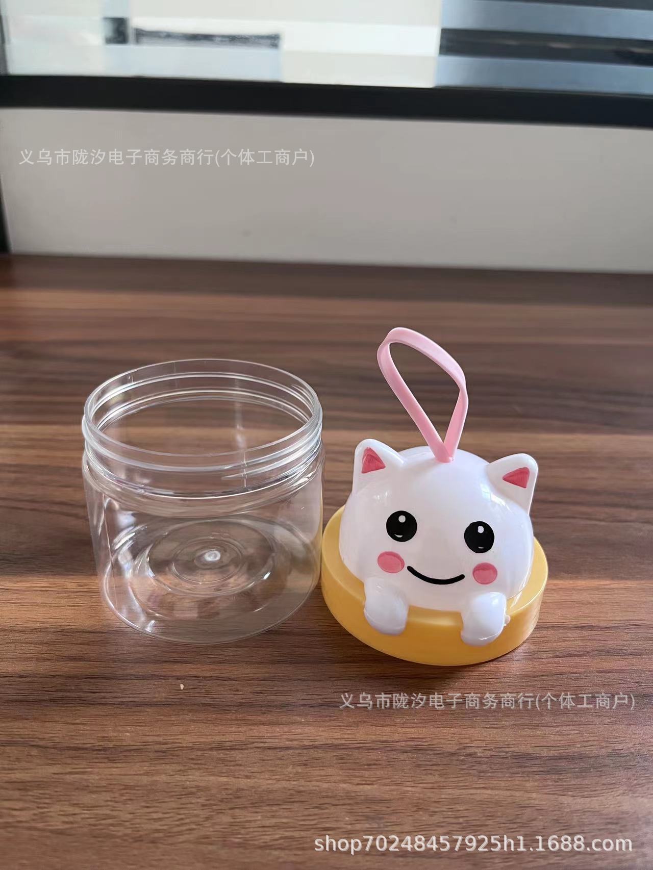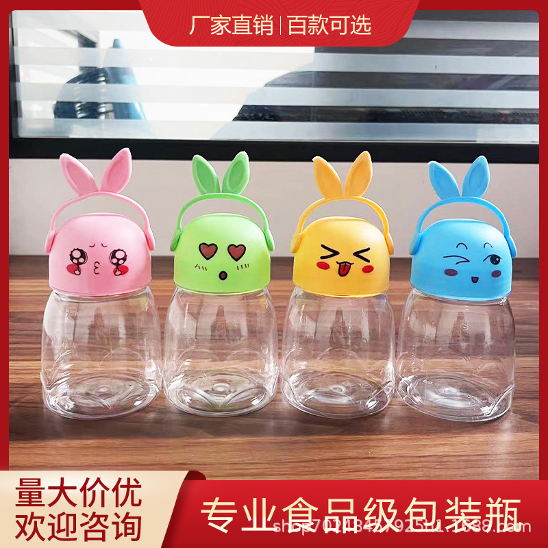 Pet食品級アニメ透明うさぎプラスチックボトルキャンディー缶露店溶豆水晶彩泥密封蓋付き小