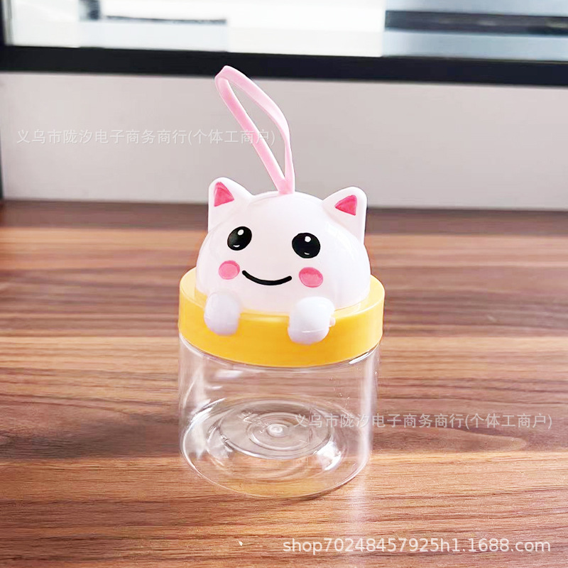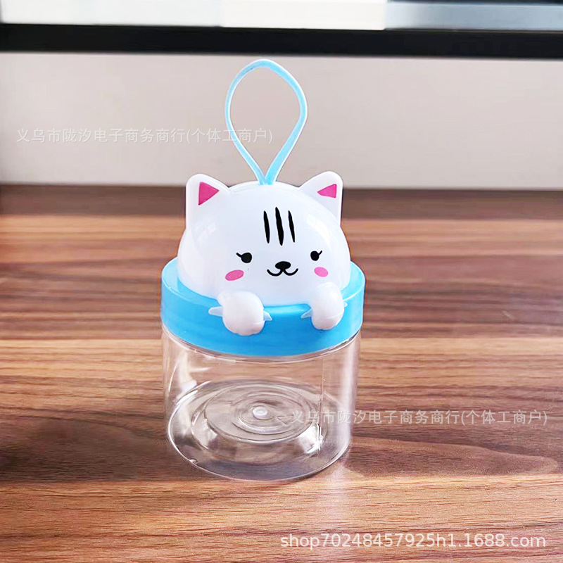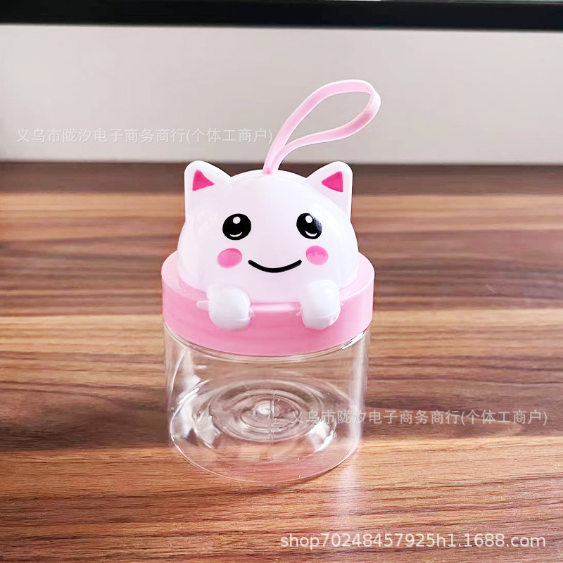 漫画プラスチック透明プラスチックボトルpet食品グレード诘めキャンディカラー泥スナックおもちゃシール缶かわいいウサギ