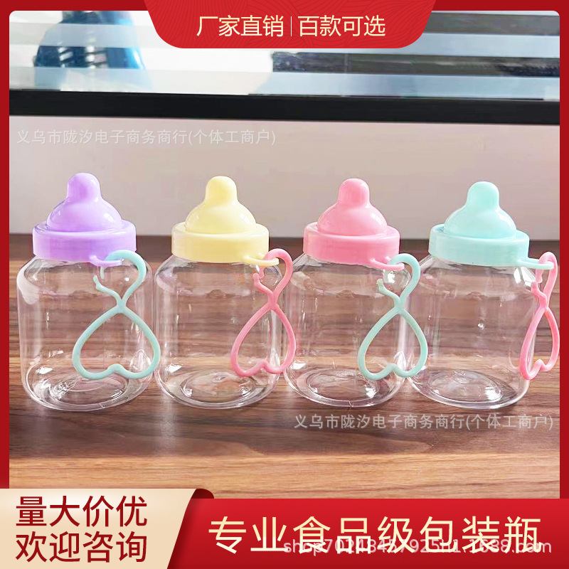 かわいい漫画小さな哺乳瓶プラスチックボトル透明包装食品キャンディー溶豆色泥収納缶密封手提げ