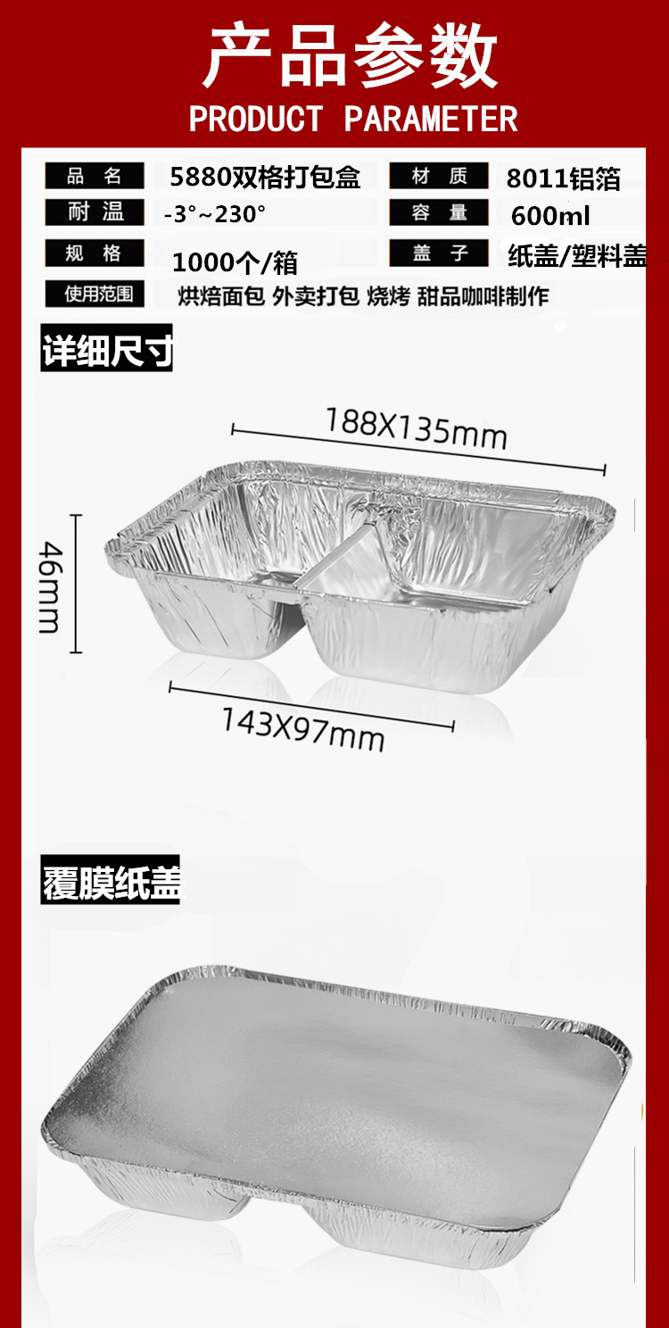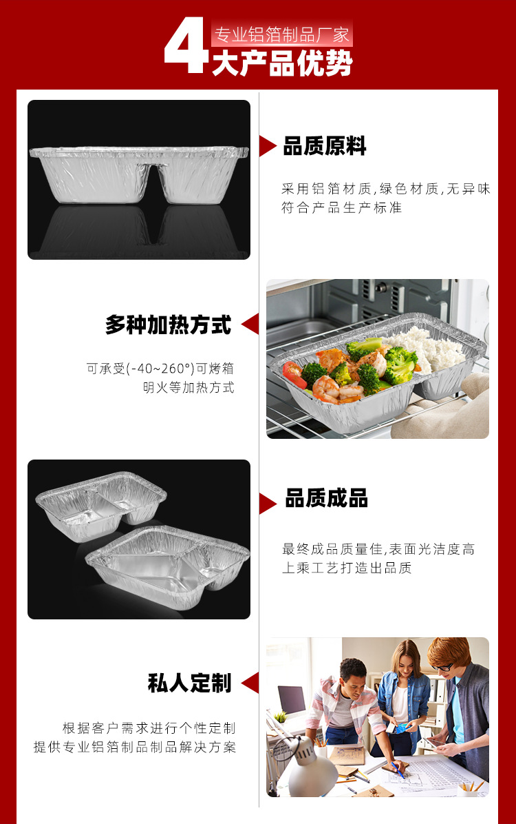 メーカーの使い捨て二重包装アルミ箔箱バーベキューアルミ箔弁当箱2格ステーキパスタ箱