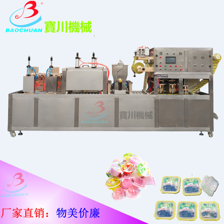 BCH-1系列全自动灌装封口机,均为全自动高速封口机,从落杯、灌装、放膜、打码、两次封口、出杯均为全自动作业。其适用于各种形状的塑料杯盒的液体或者膏体,粉末的灌装封口。例如:五谷颗粒,果冻﹑酸奶﹑冰淇淋,果汁﹑调味品﹑酱料﹑豆奶,咖啡粉,豆奶粉,酸梅汤,豆浆等。