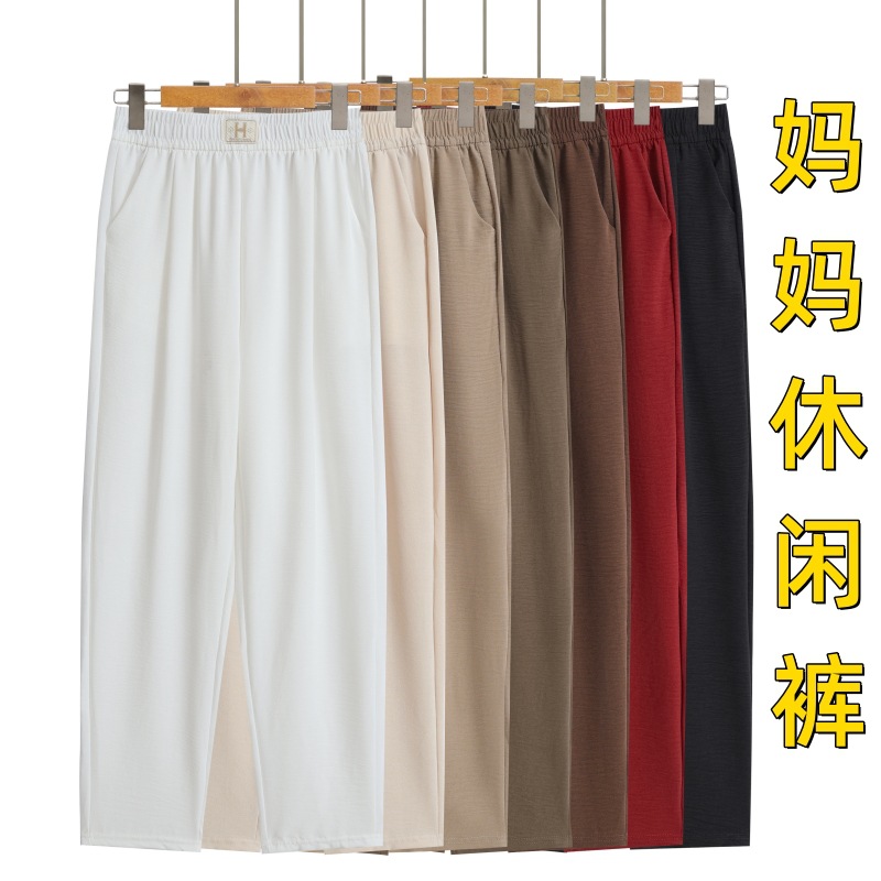 夏のカジュアルパンツの女性は腰が高くてゆったりしています。