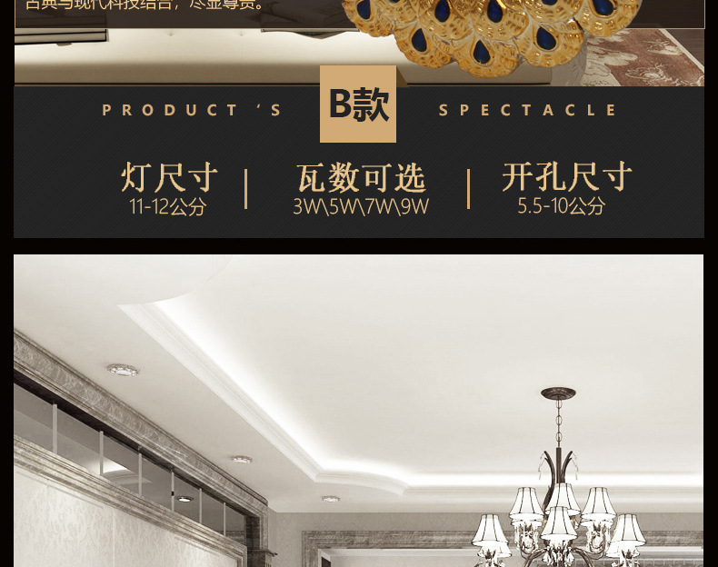 ダウンライト灯灯芯駆動光源部品中国式ヨーロッパ風牛眼灯猫眼灯led