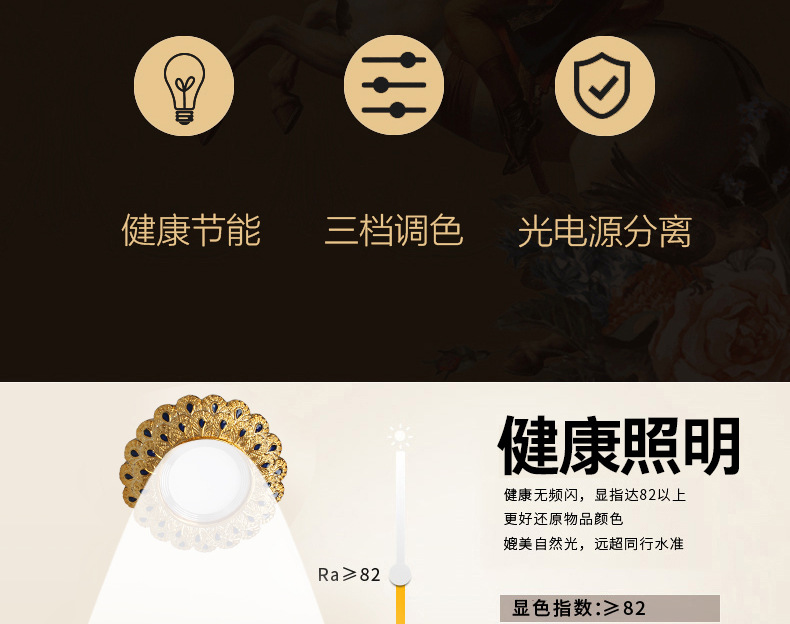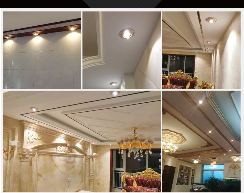 智閃欧式ダウンライトled埋め込み式3w三色変光天井灯客間家庭用樹脂スポットライト75穴灯