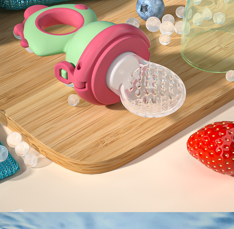 赤ちゃんの果物と野菜のコアラは果物のサプリメントを噛んで袋のシリコンネットを噛んでおしゃぶりをなだめます。