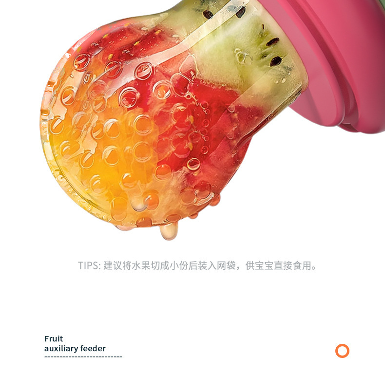 メーカーの卸売りの赤ちゃんは果物と野菜を噛んで楽英語の子供の補食器を噛んで乳首の赤ちゃんの果物の補食袋をなだめます。
