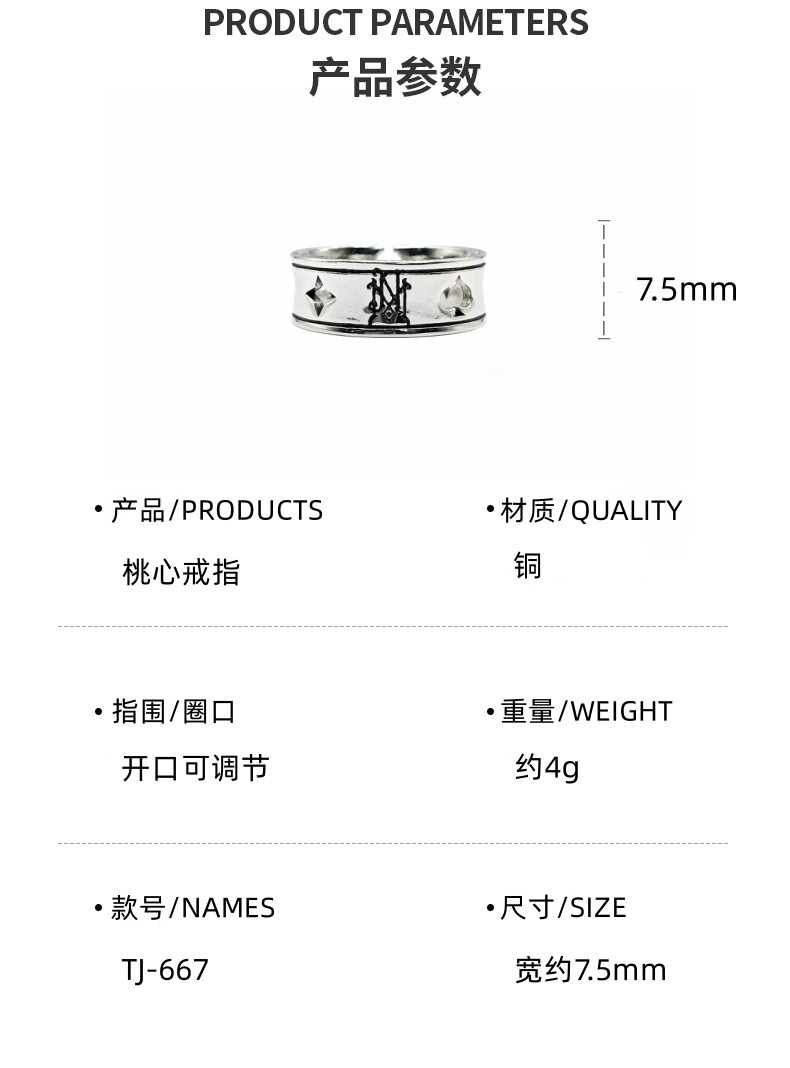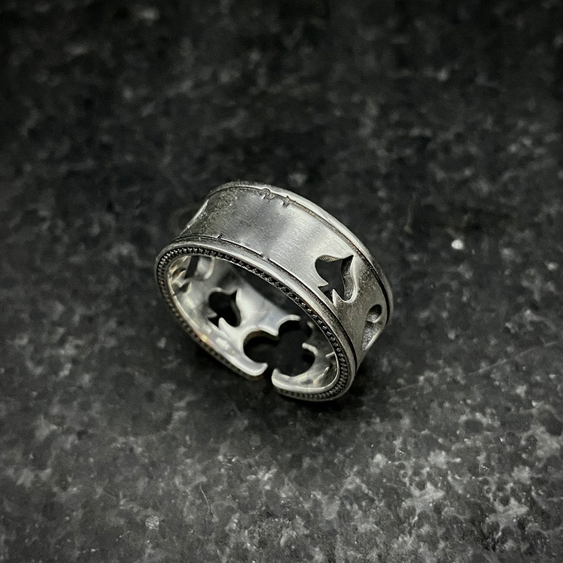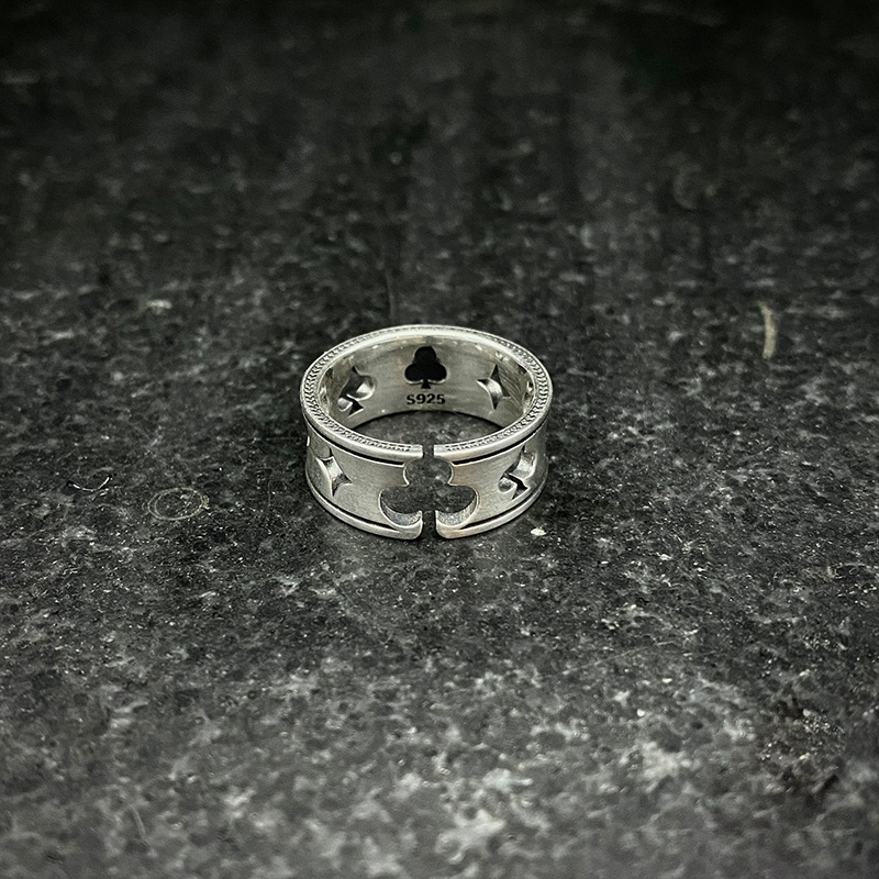 芸尚s925泰銀オリジナルデザイン手作り街頭ヒップホップスタイルトランプ梅の四角口指環戒子
