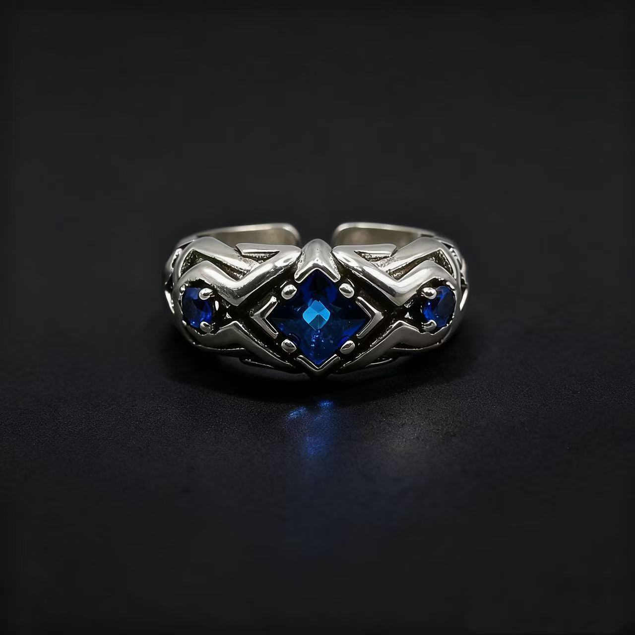 艺尚复古「孤星」蓝宝石戒指男生男款泰银男士小众独特男开口男戒
