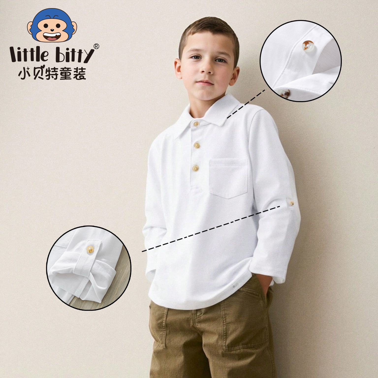 2025 春と秋の子供用ポロシャツ長袖ラペル中大型子供男性と女性のキャンパス服クラス制服通気性綿底シャツ