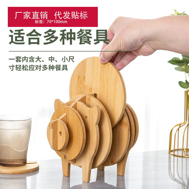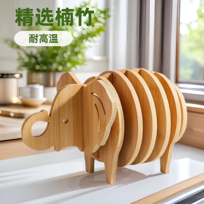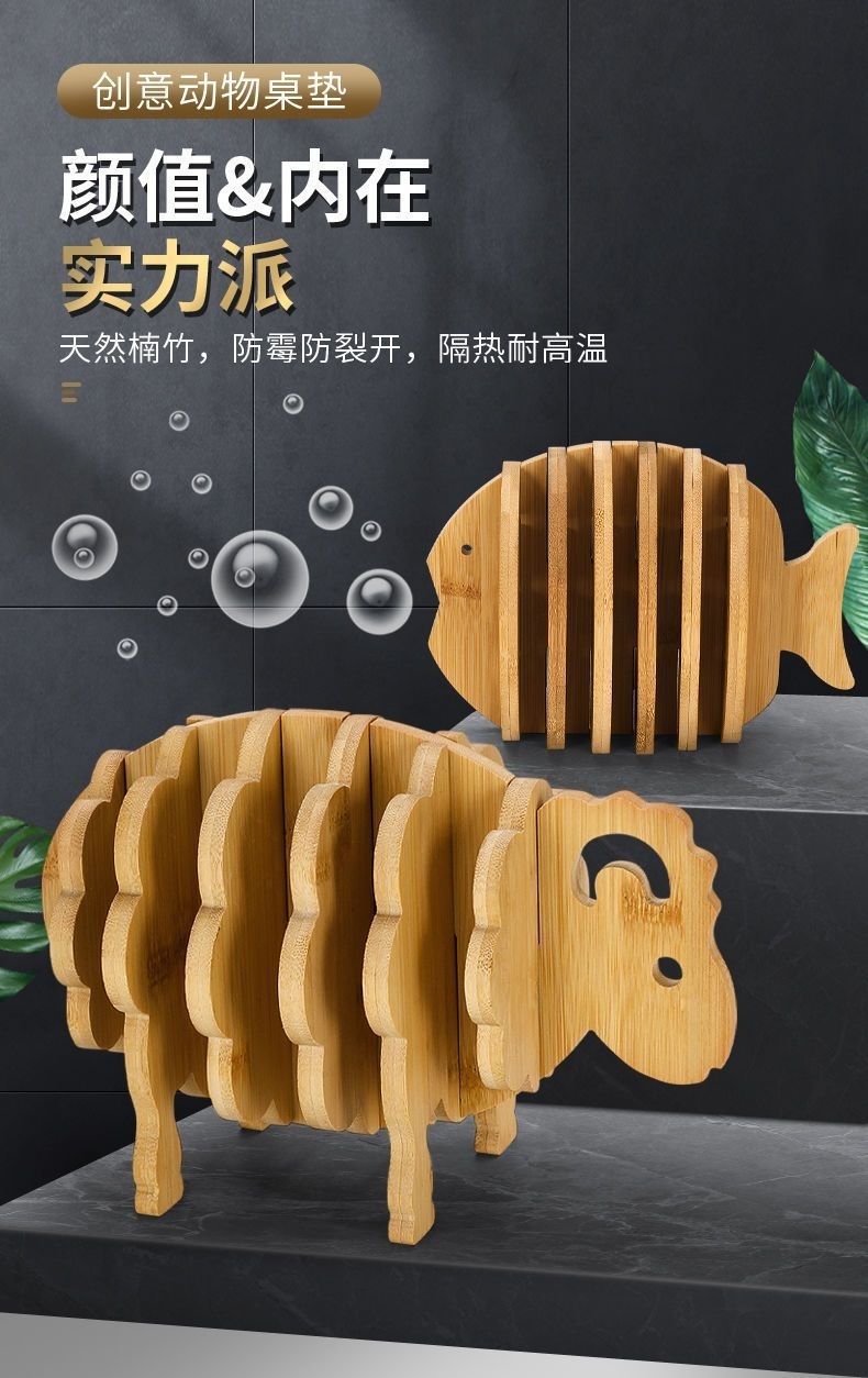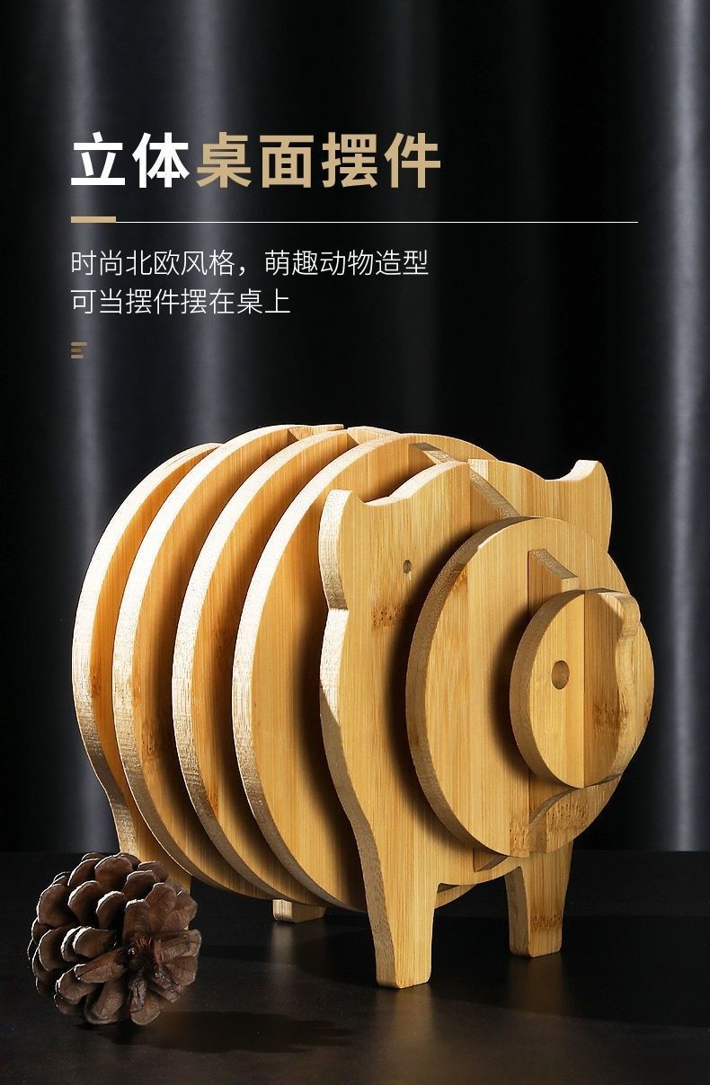 竹製立体動物型プレースマット収納デスクトップ装飾鍋敷きカップマット象型断熱テーブルマット耐熱