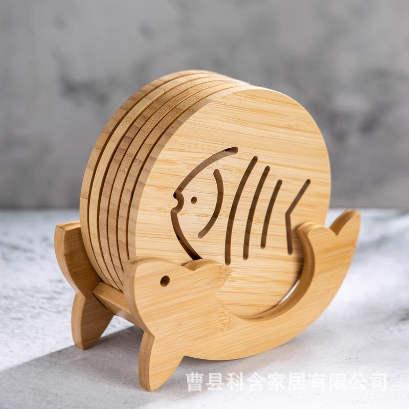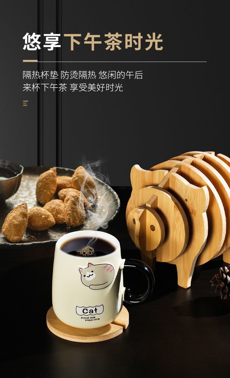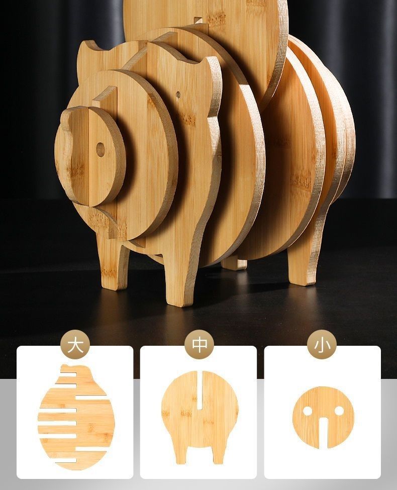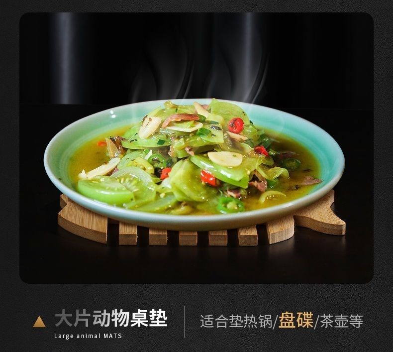 竹製立体動物型プレースマット収納デスクトップ装飾鍋敷きカップマット象型断熱テーブルマット耐熱