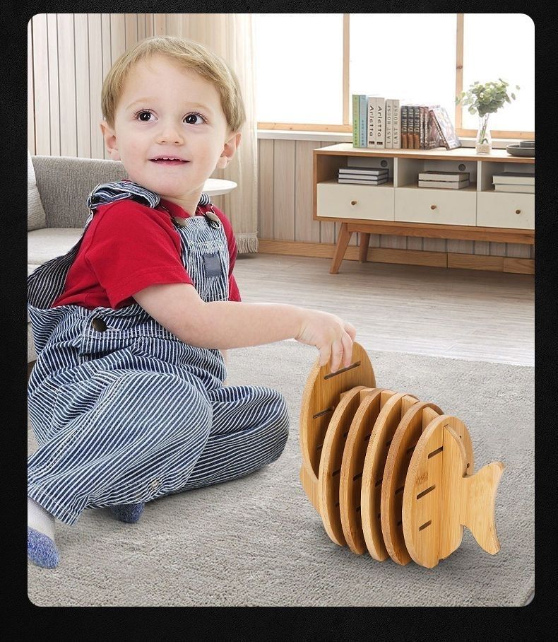 FSC竹製の食事マットの創意的な動物の形の断熱マットの多機能は、木製のコースターの置物の家庭用テーブルマットを分解することができます。
