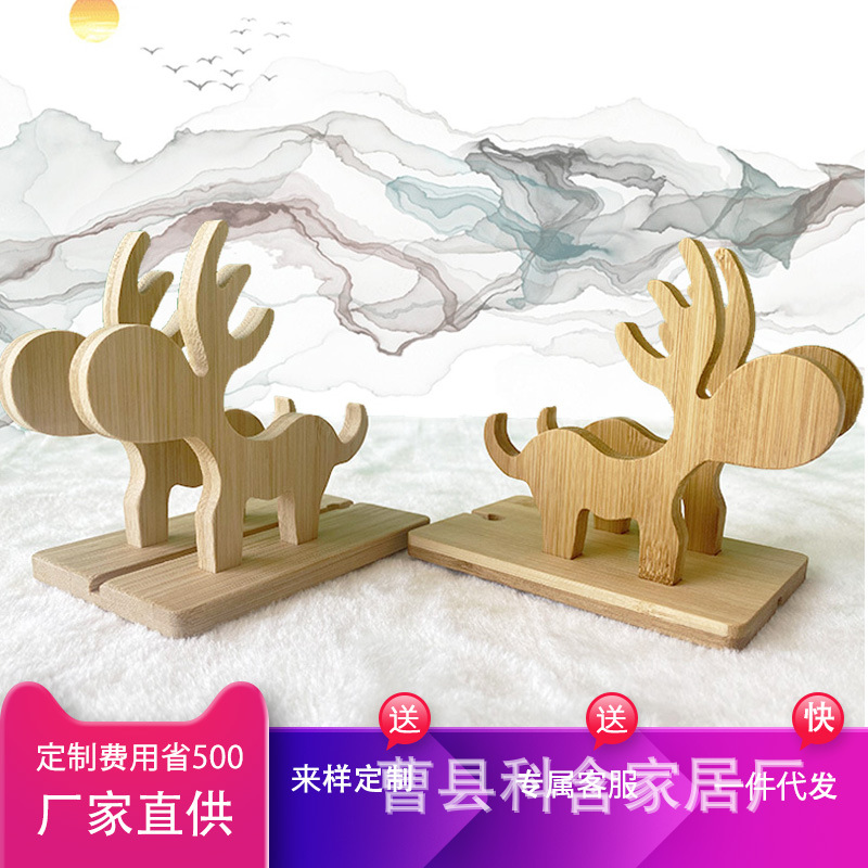 鹿のデスクトップの携帯電話のスタンドの創意的な漫画のスタンドのかわいい木の怠け者の携帯電話の台座の実木の誕生日のプレゼント
