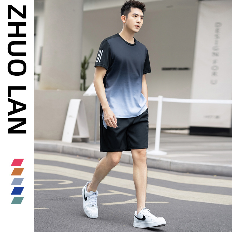 加肥運動スーツ男2024夏デブ運動体ゆるい速乾服セットプラスサイズ屋外2セット