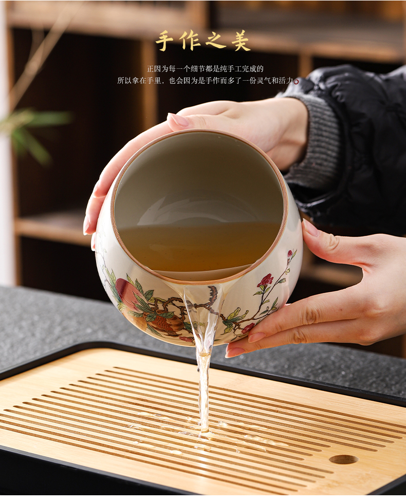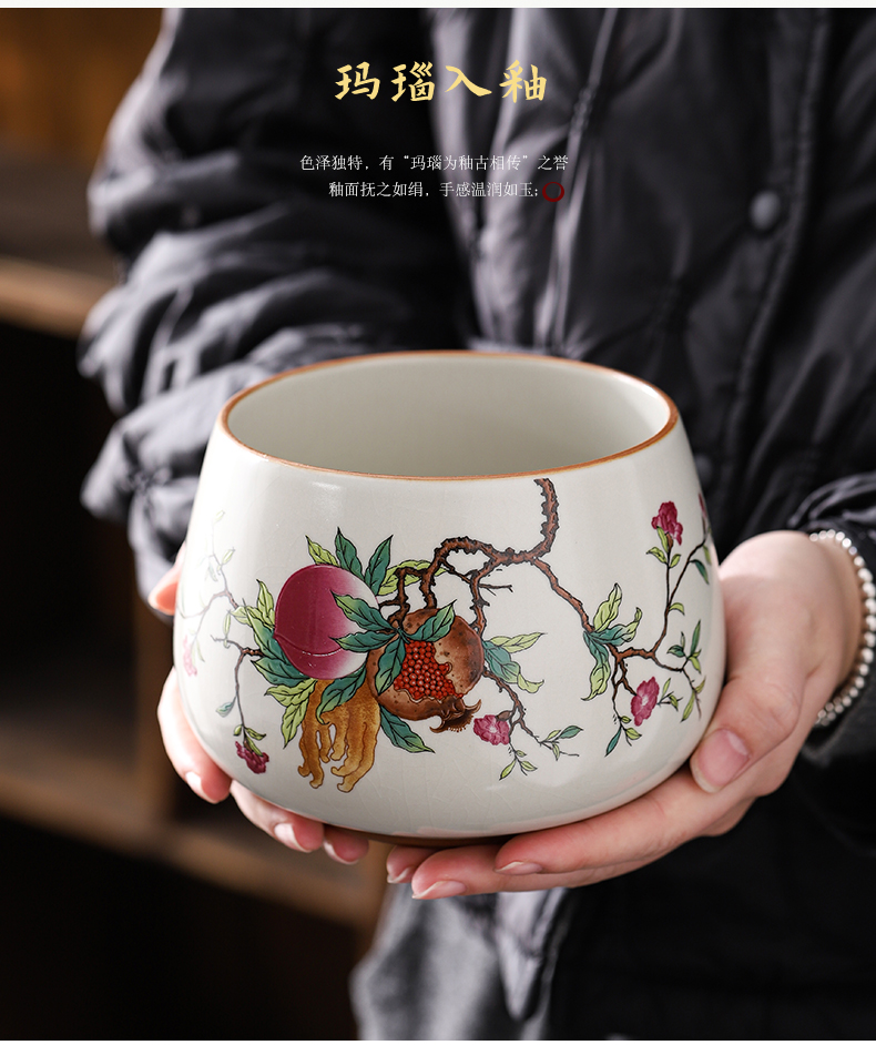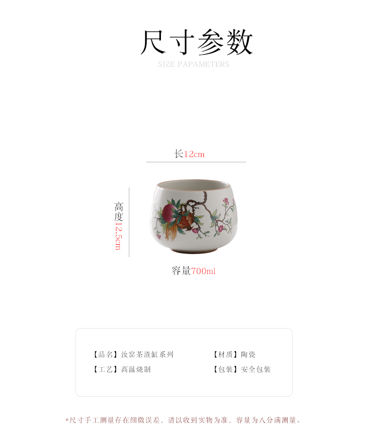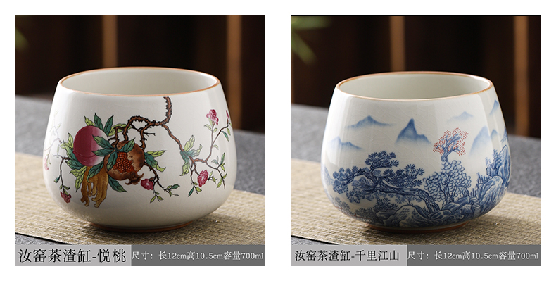 米黄汝窯茶滓かめ大型家庭用茶洗工夫茶器部品茶卓茶水廃バケツ筆洗カップ洗
