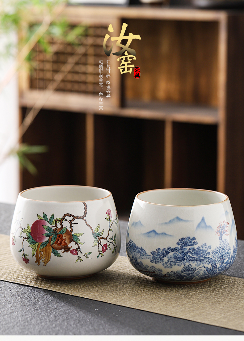 在庫一掃特価陶磁器カップ単一カップ家庭用粗陶主人カップ汝窯手描き品茗杯お茶カップ