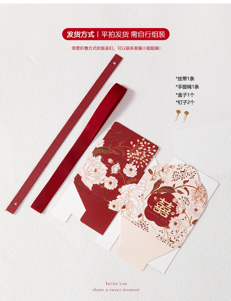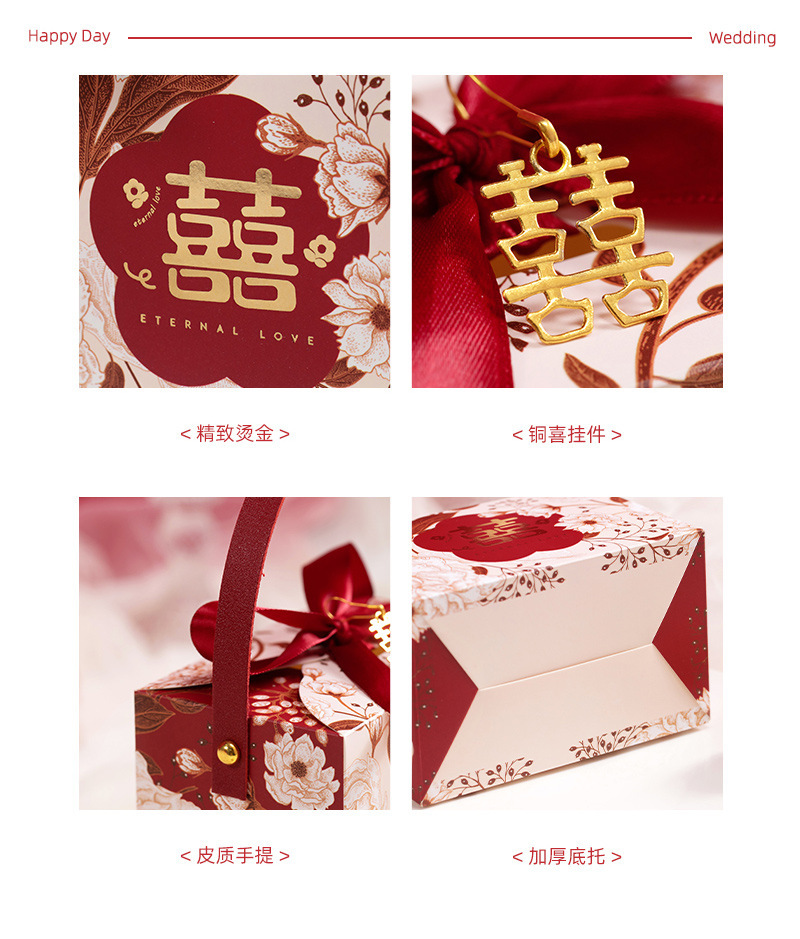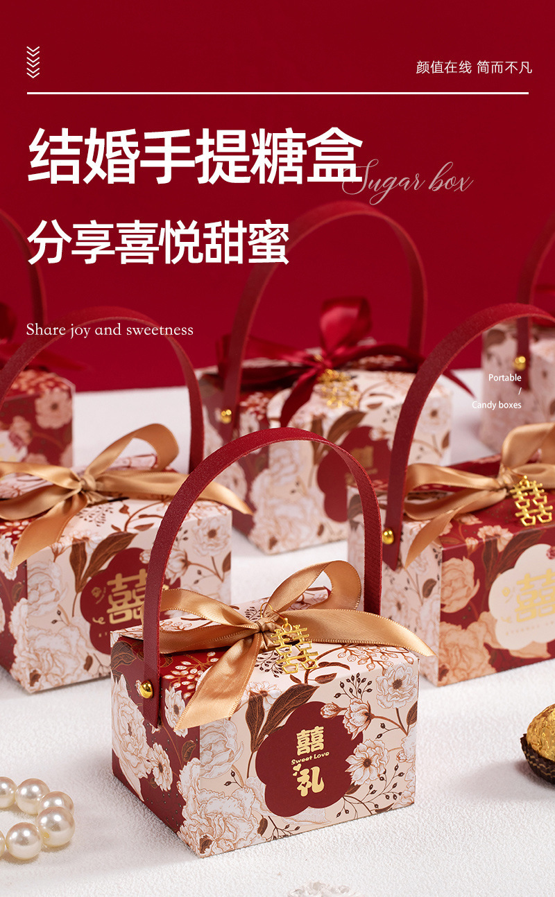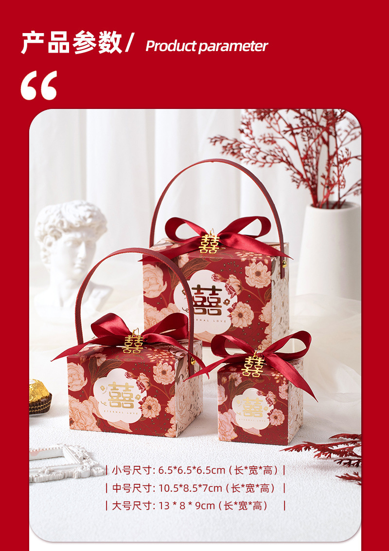 創意新型中国式高級感結婚手提げ喜糖箱喜糖袋結婚式高颜値包装糖果箱