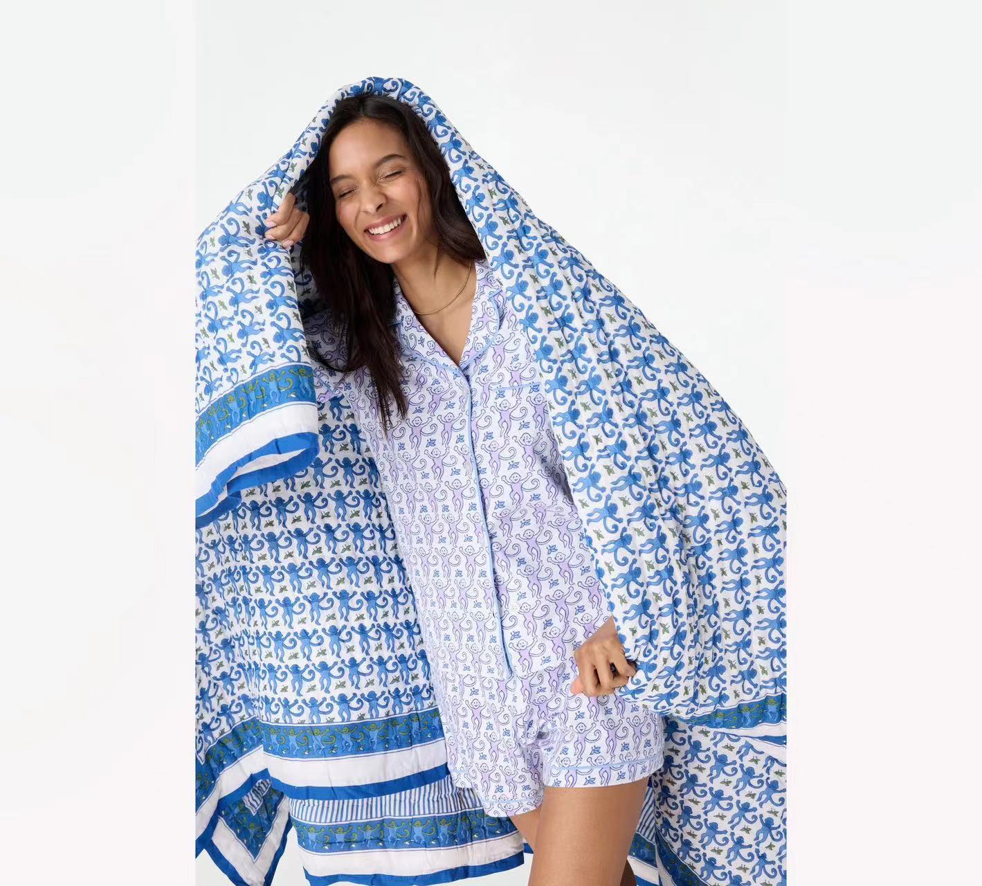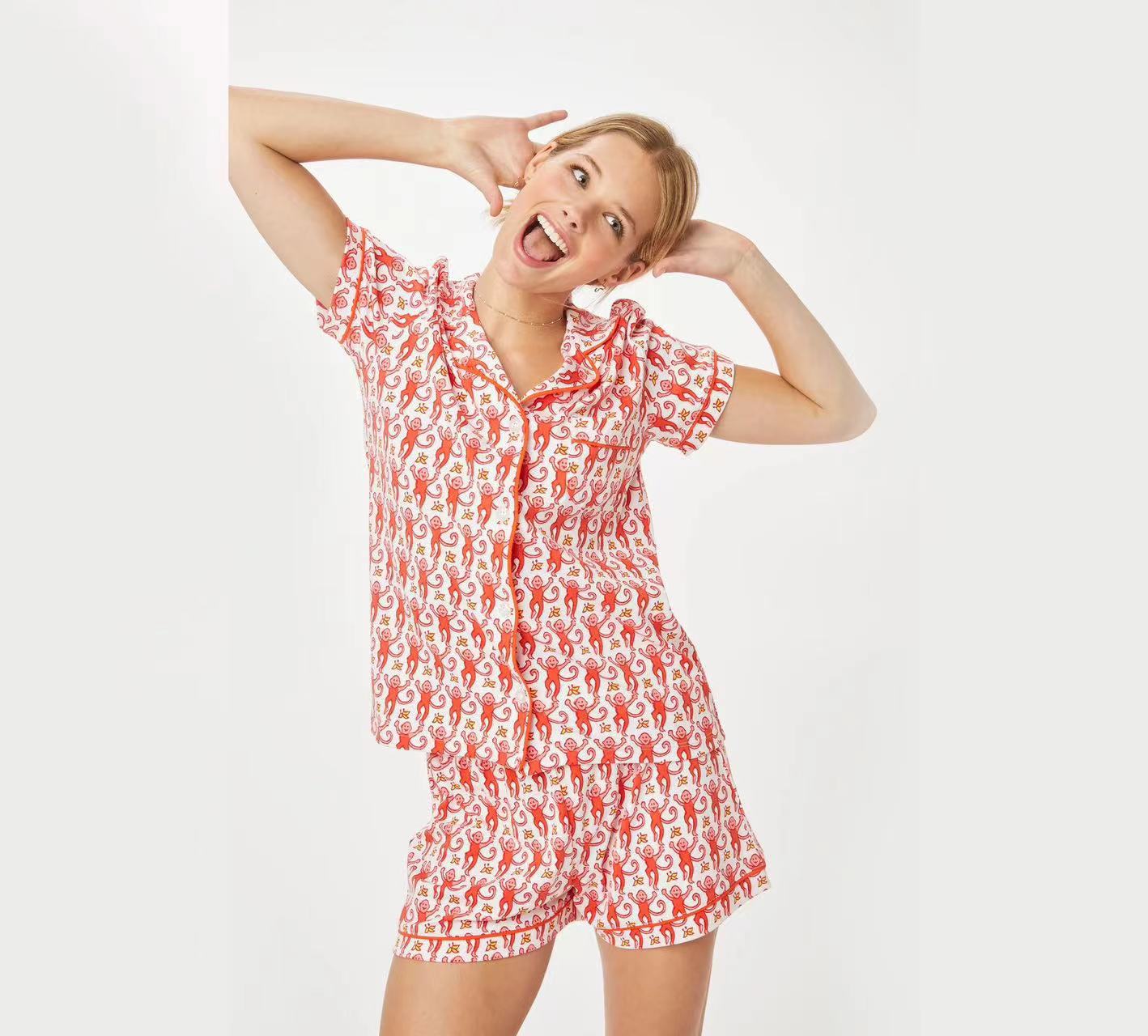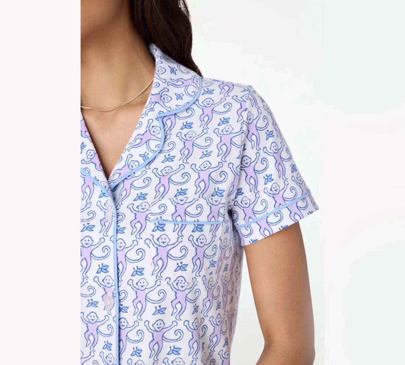 国境を越えて爆発した夏のサルのプリントスーツの女性パジャマの大きいサイズの気質の家の親子の居住服のアマゾン