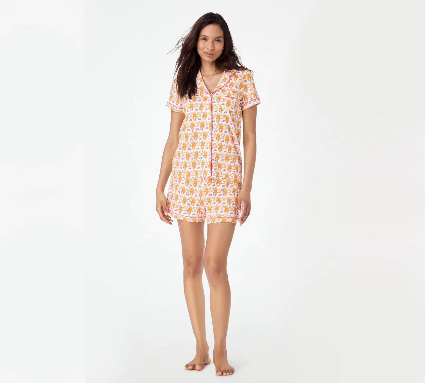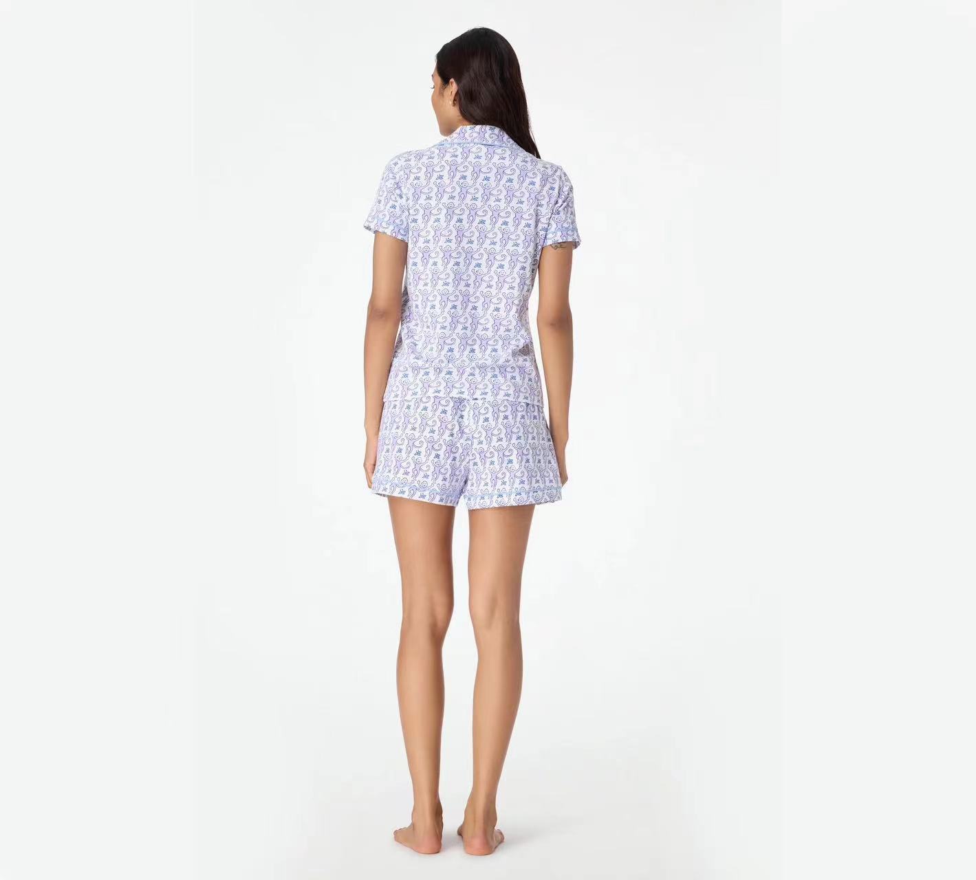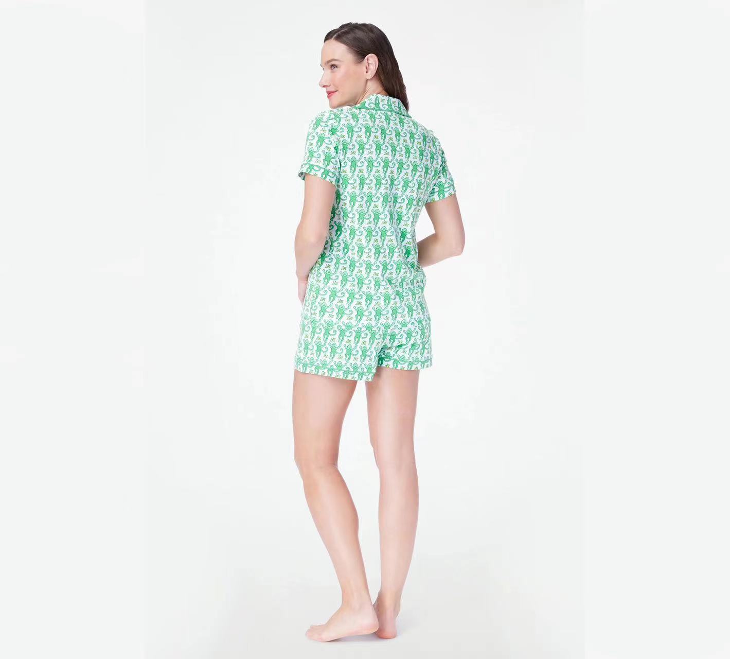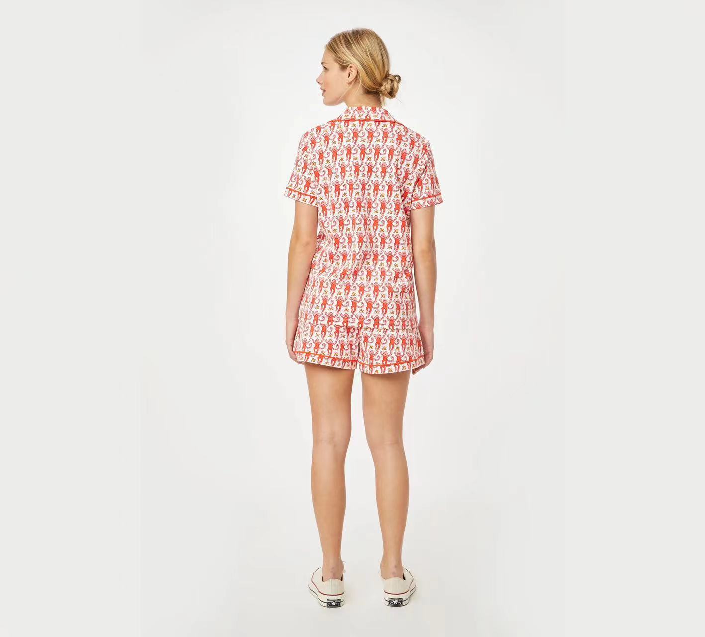 2025跨境新款女士睡衣 春夏款短袖休闲家居服 3D印花夏季薄款套装