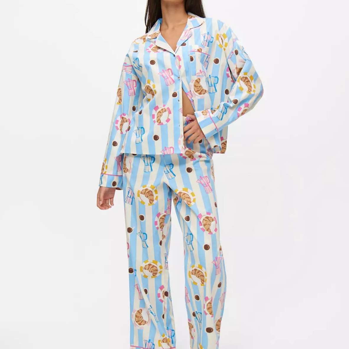 2025アマゾン欧米の外国貿易の越境パジャマの女性の長袖の春と秋の外は家庭服の四季のスーツを着ます。
