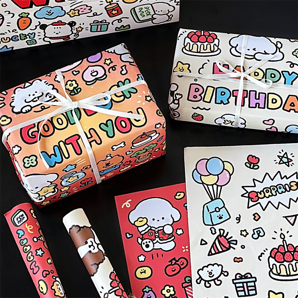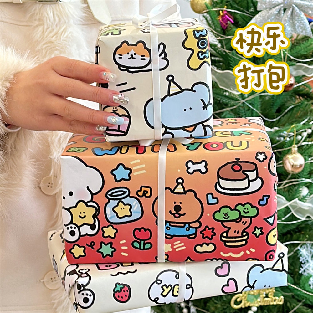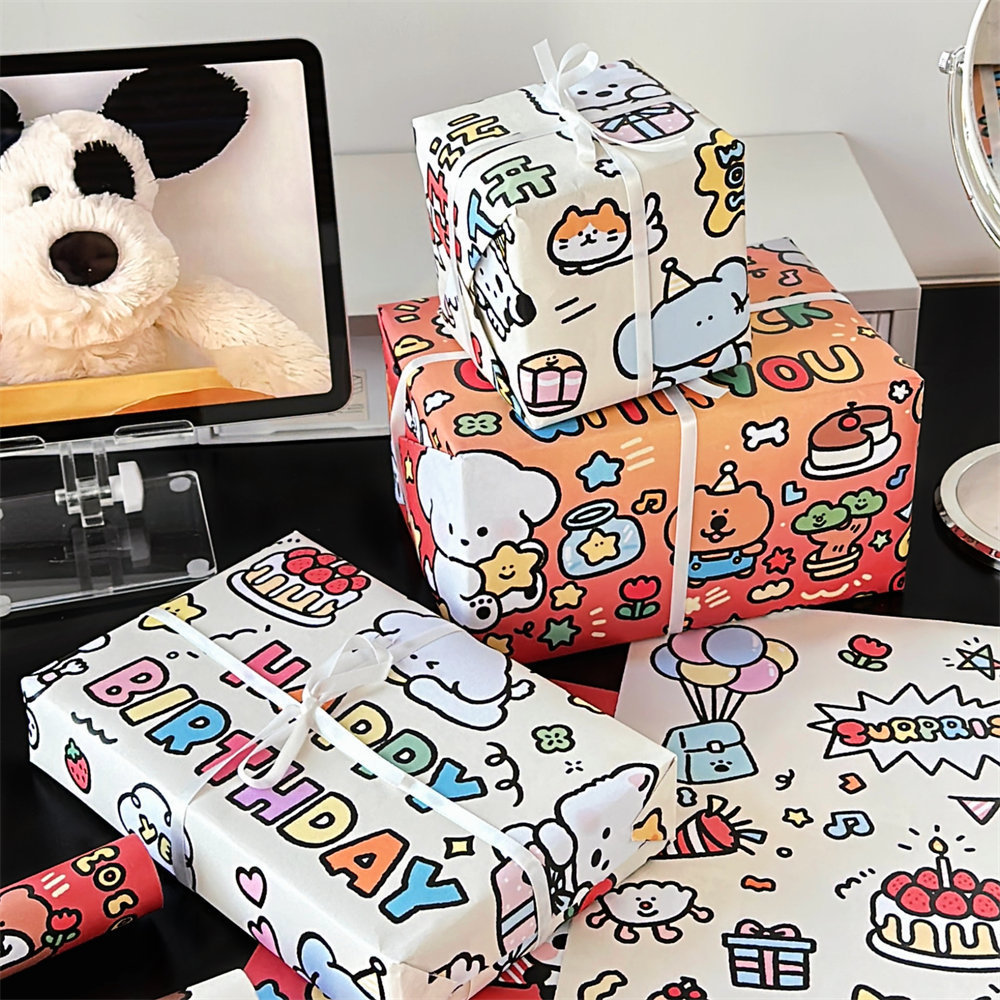 子犬オリジナル落書き漫画ギフト包装紙高颜値かわいい誕生日プレゼント包装紙