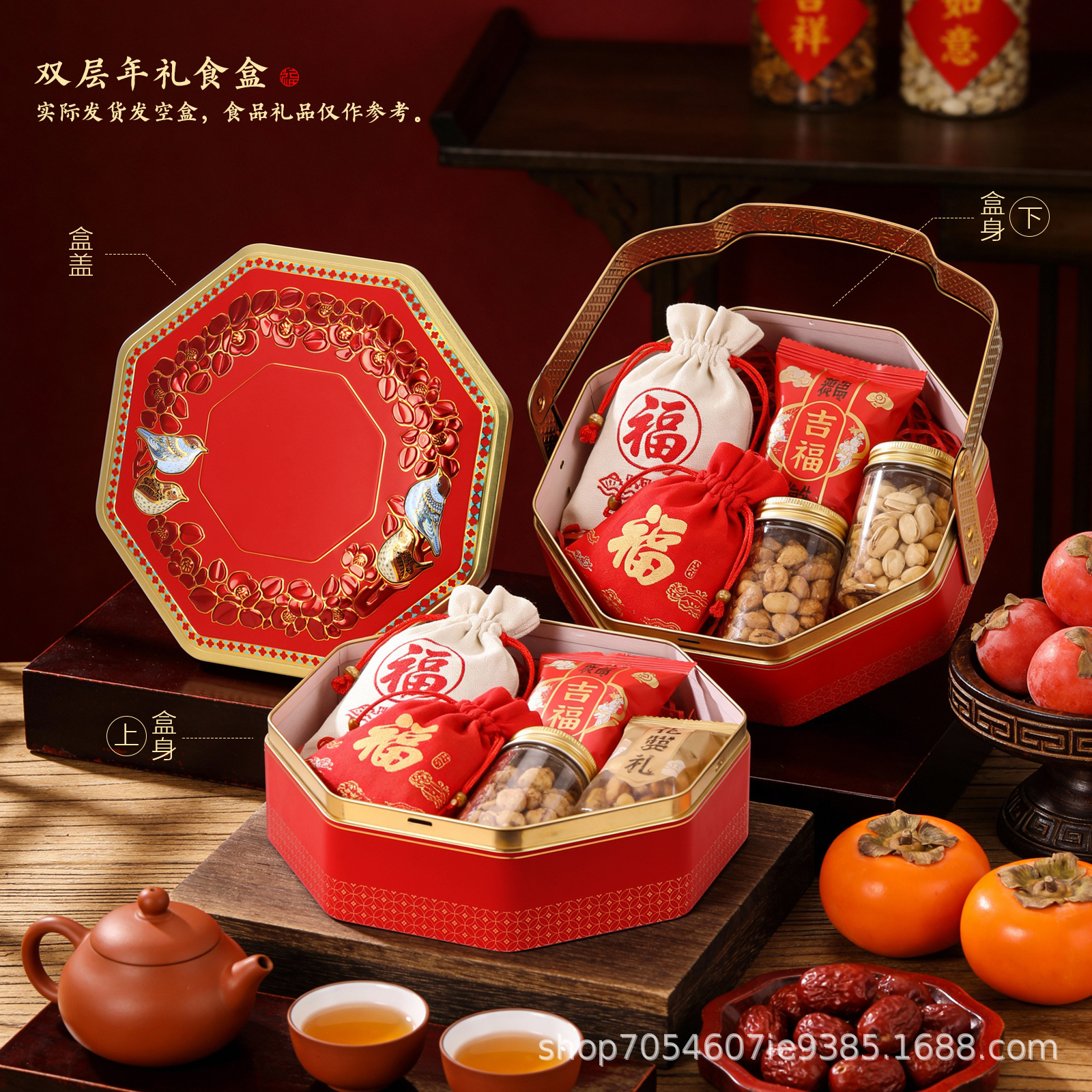 年货礼盒散装零食坚果礼品盒节日伴手礼盒空盒马口铁八角盒子批发