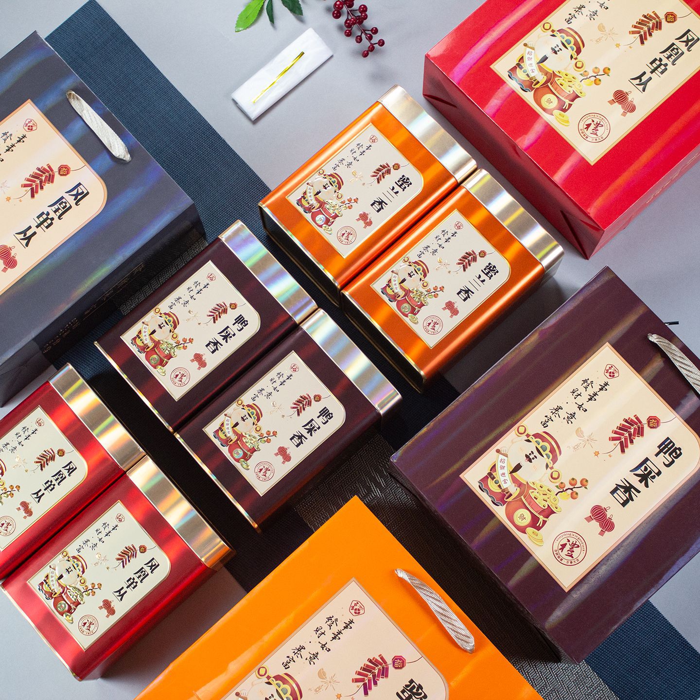 新款凤凰单枞蜜兰香鸭屎香大红袍一套一斤装大号镭射铁茶叶罐空罐
