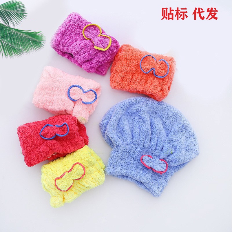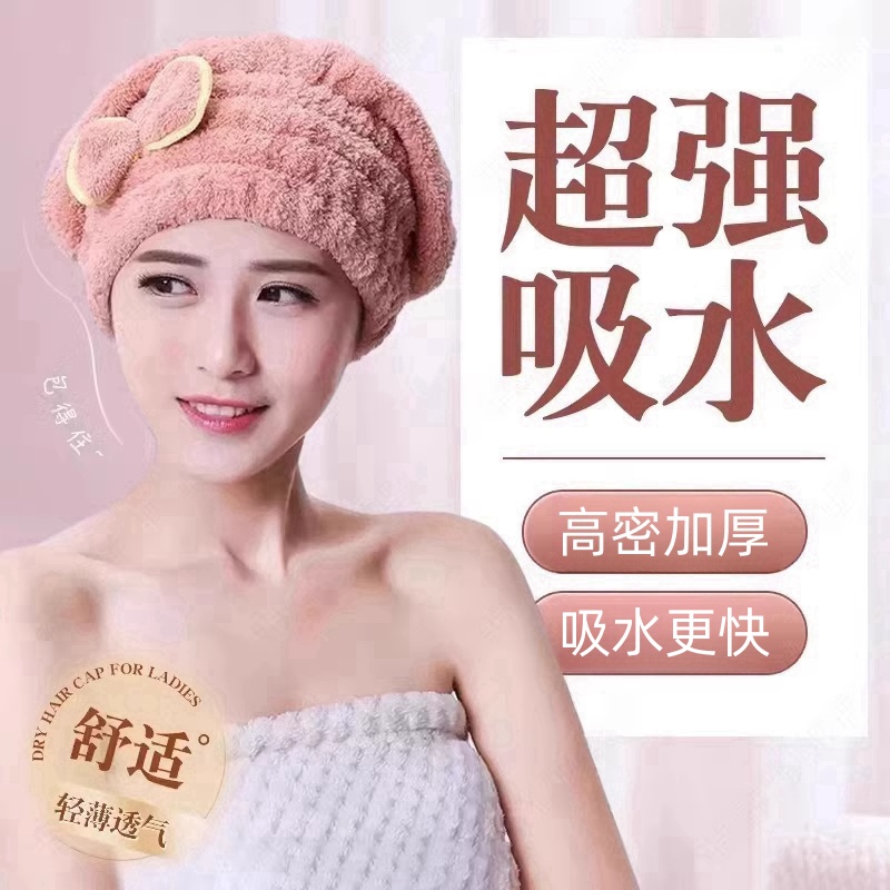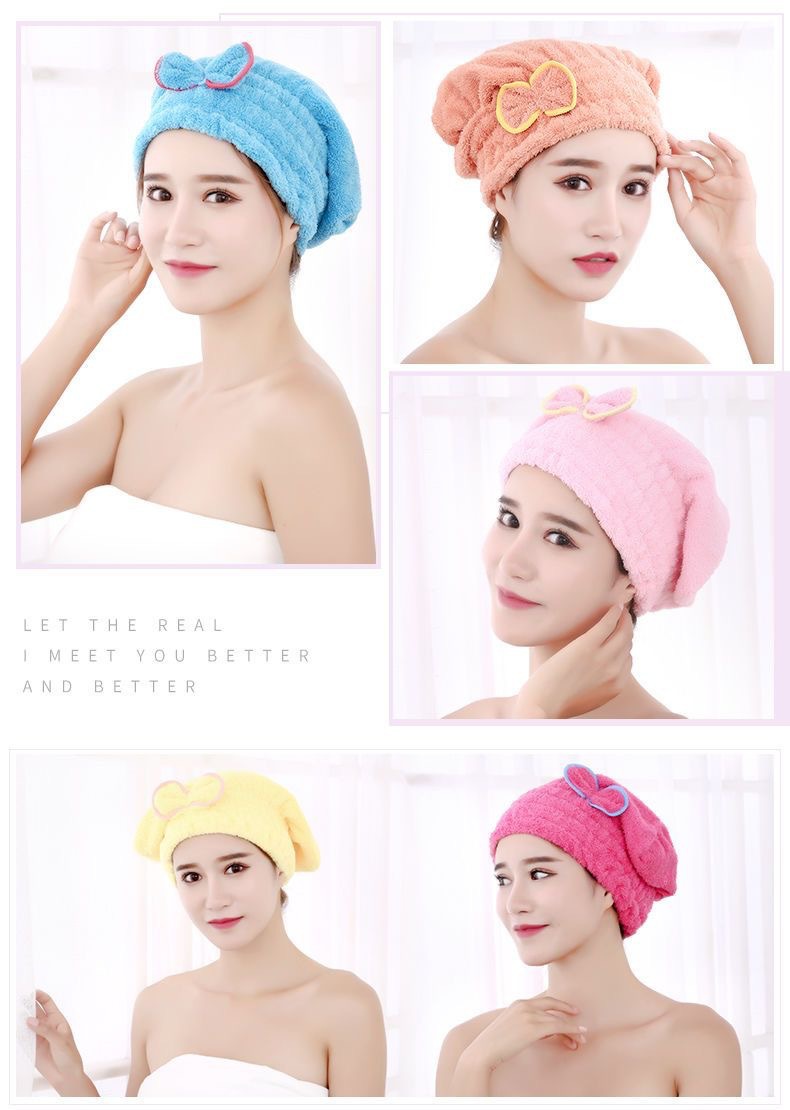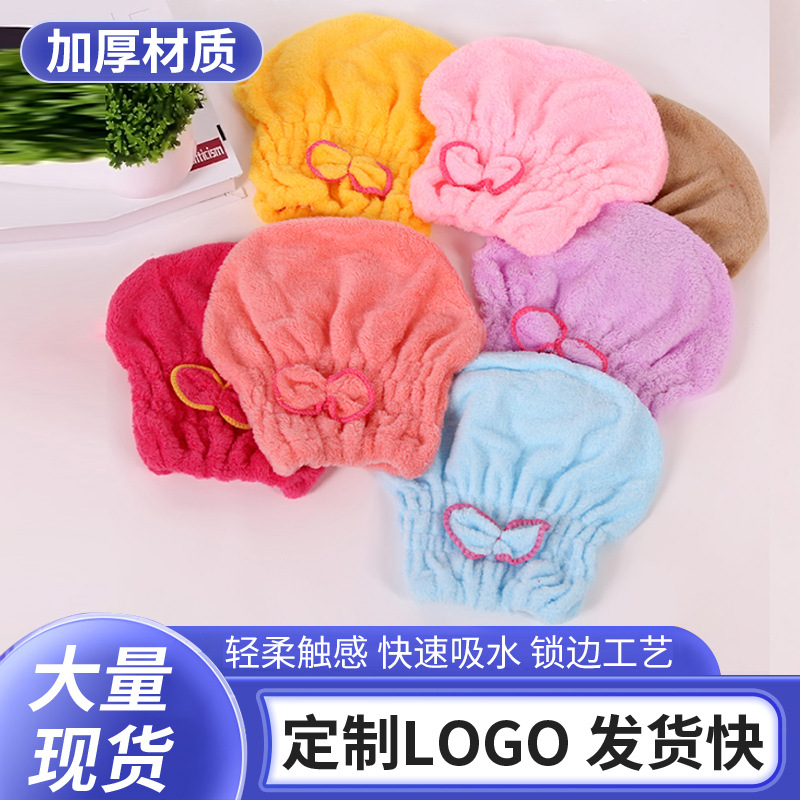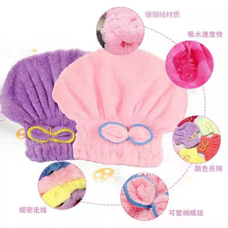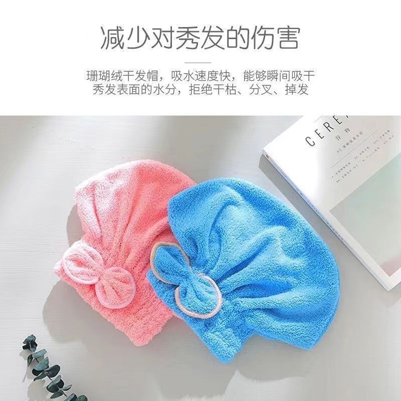 干发帽女吸水加厚新款可爱蝴蝶结擦头发毛巾秋冬洗头珊瑚绒浴帽