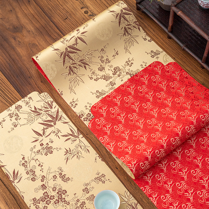 红色双面防水茶席小茶垫竹子复古桌旗中式禅意茶旗防水茶室金色